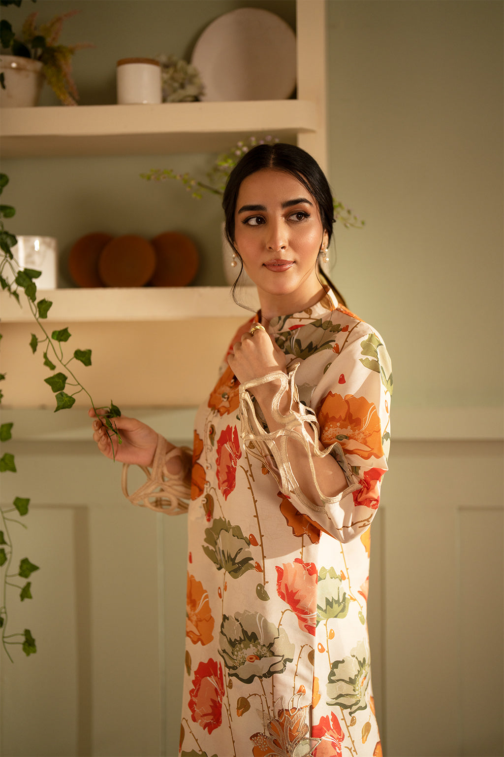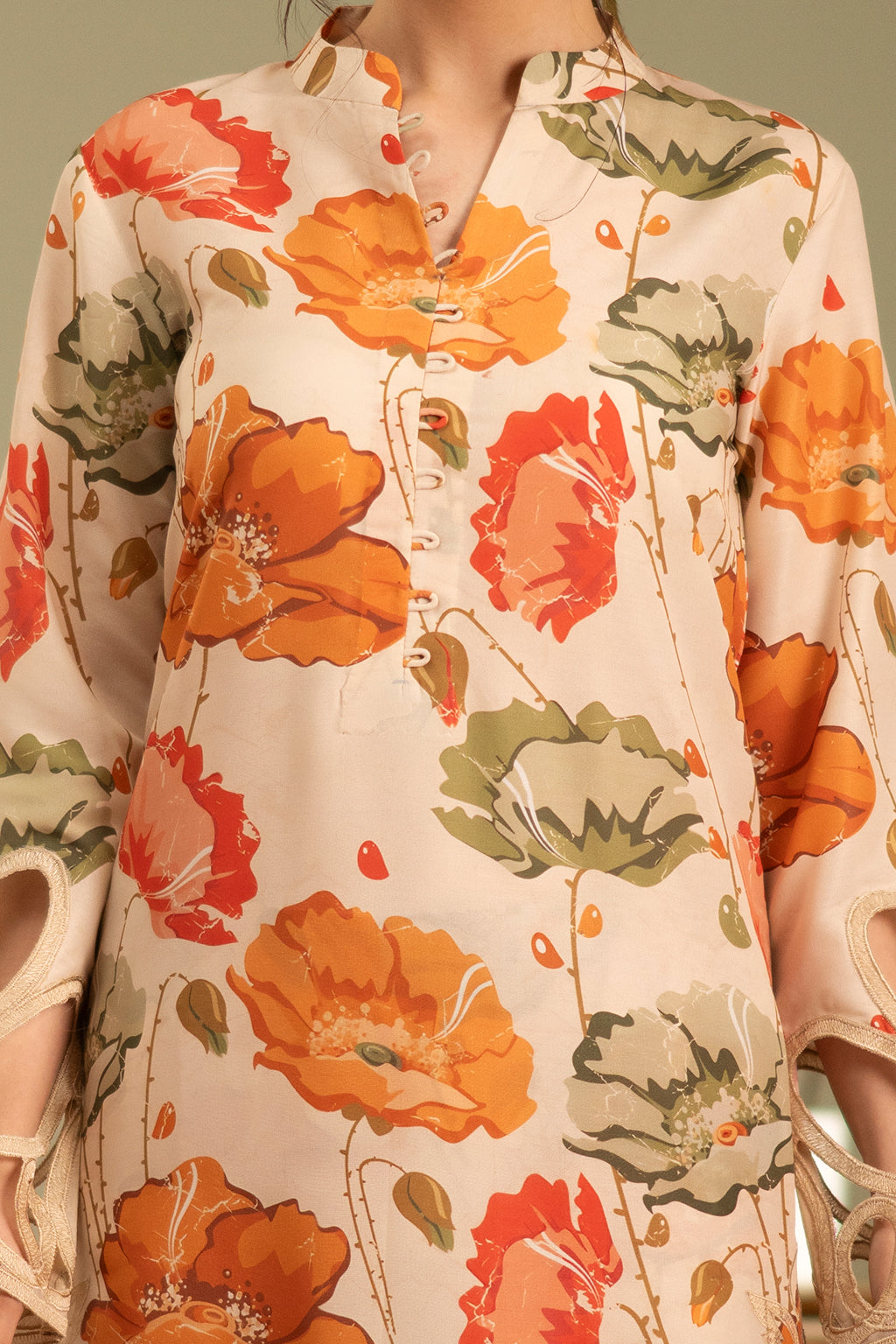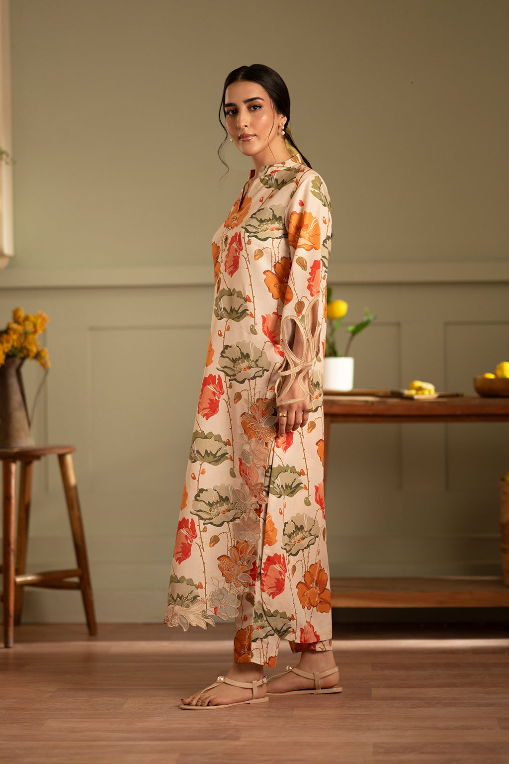 Straight shirt with cutwork embroidery on the sleeves and slits along with the daman.