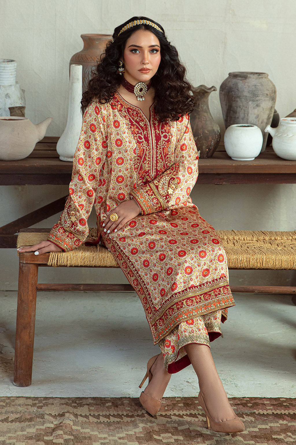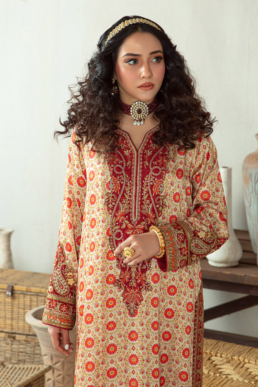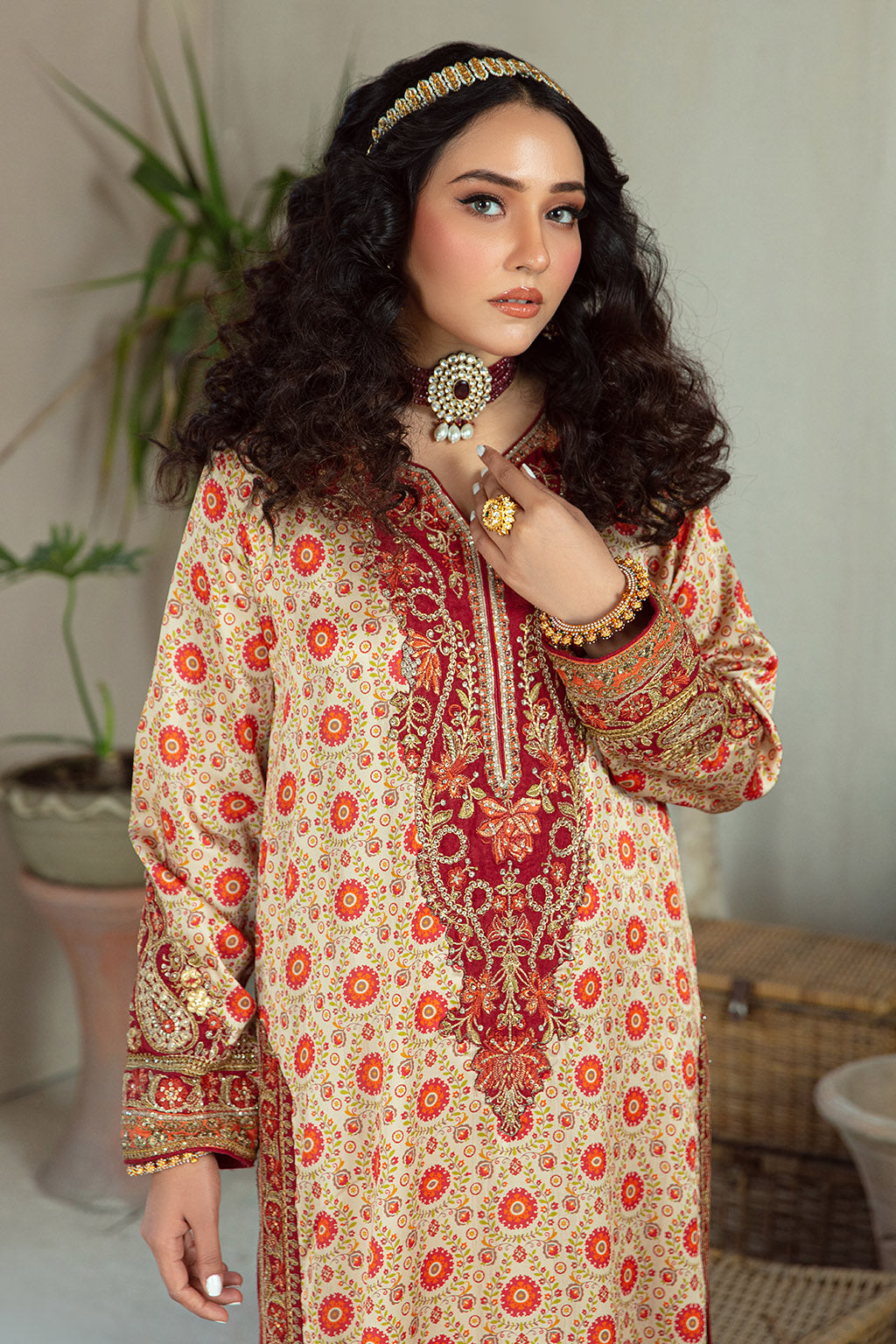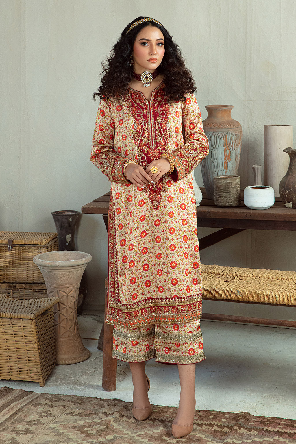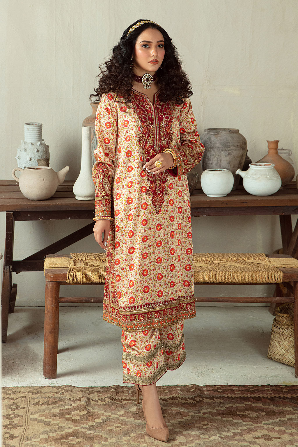 • Embroidered neckline , sleeves and trouser