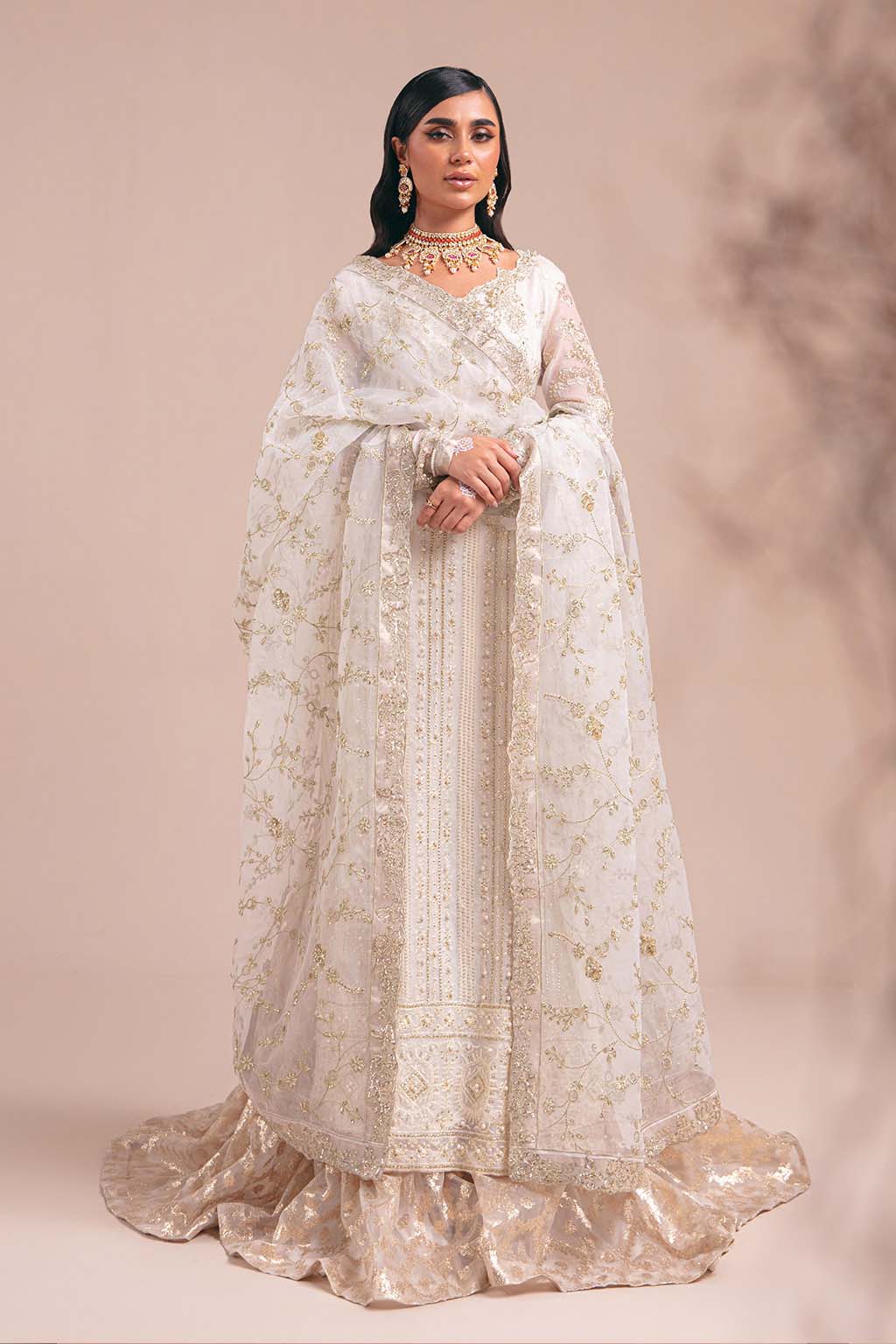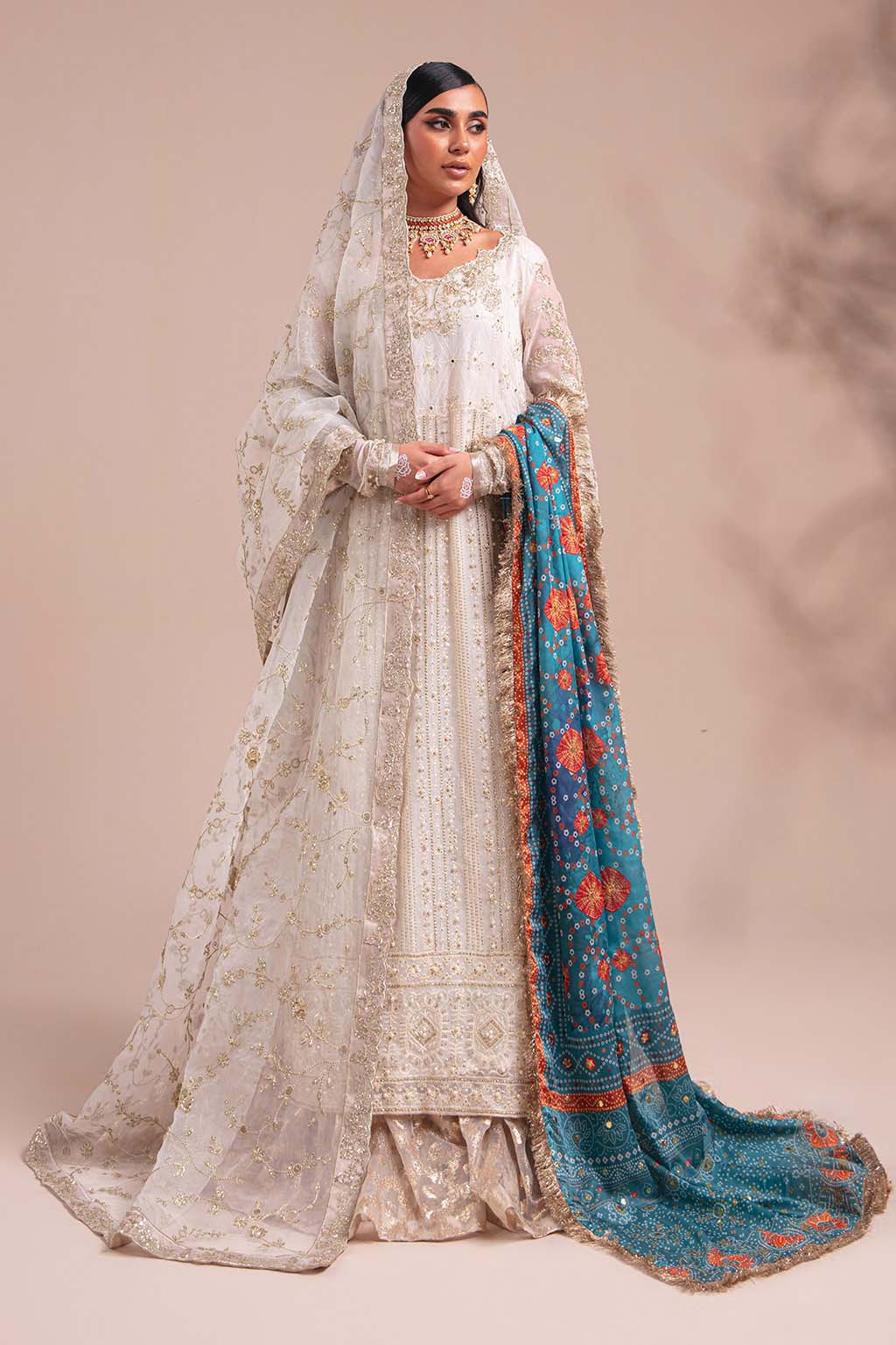 Long heavily embroidered shirt with delicately handworked bodice and sleeves paired with farshi gharara and floral embroidered organza dupatta added with chunri and kamdani silk dupatta.