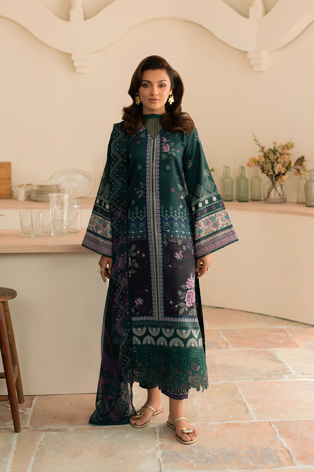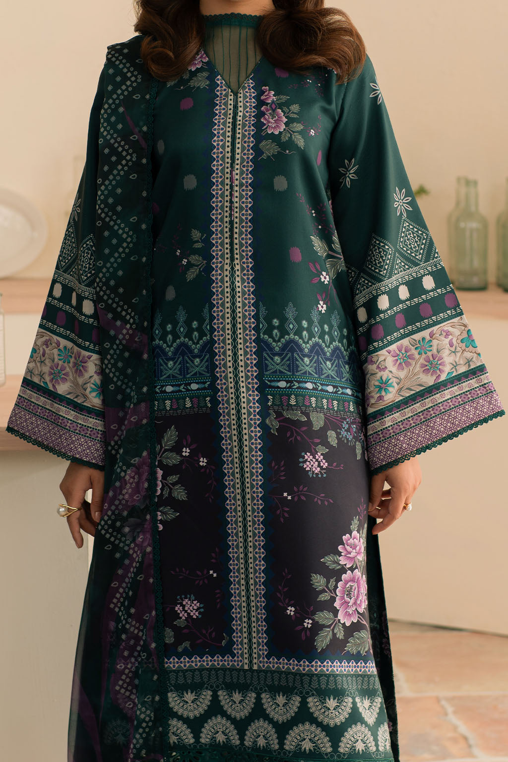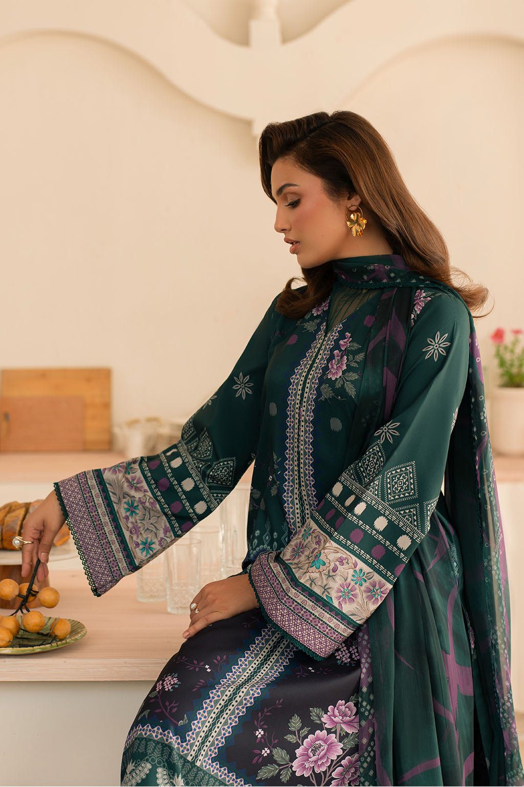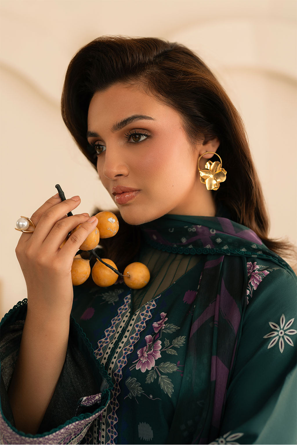 Printed lawn silk embroidered shirt, paired with printed lawn silk trouser & chiffon dupatta