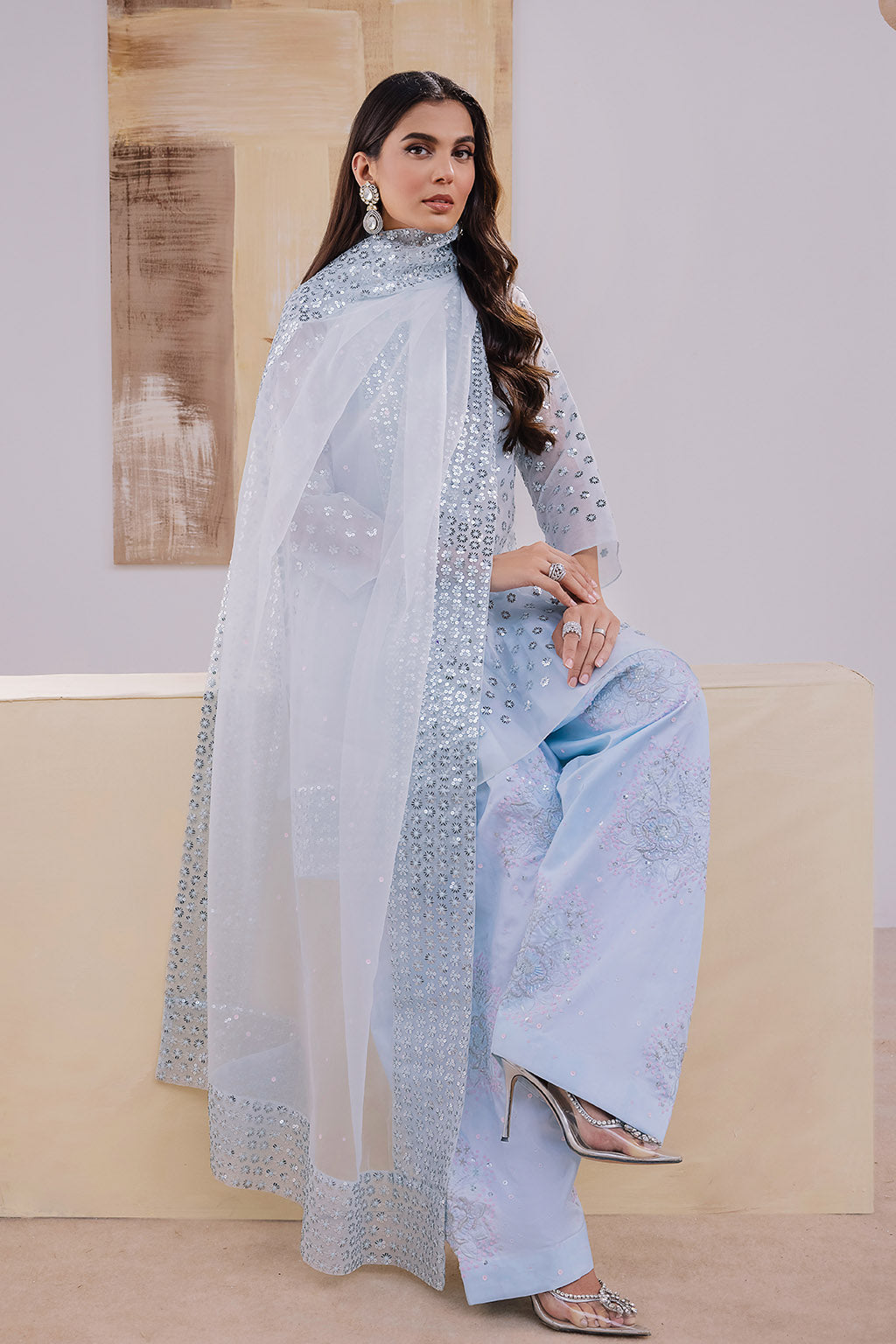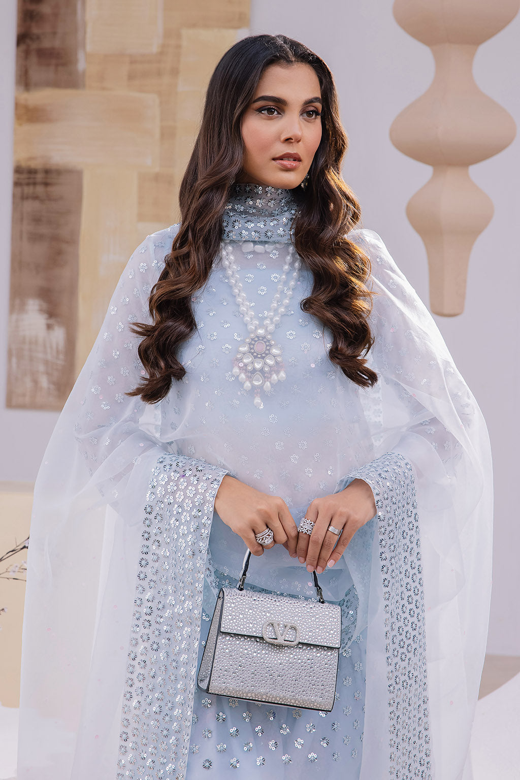 - Paired with matching organza heavy sequin blue dupatta and beautifully crafted embellished shalwar. ‚ ‚
