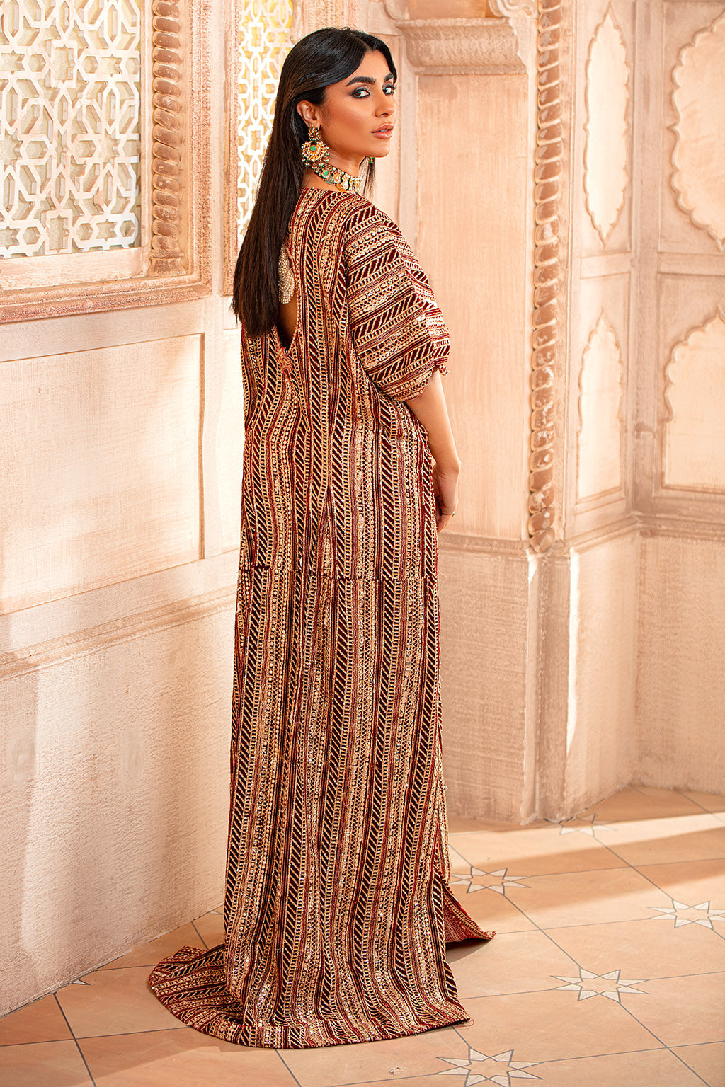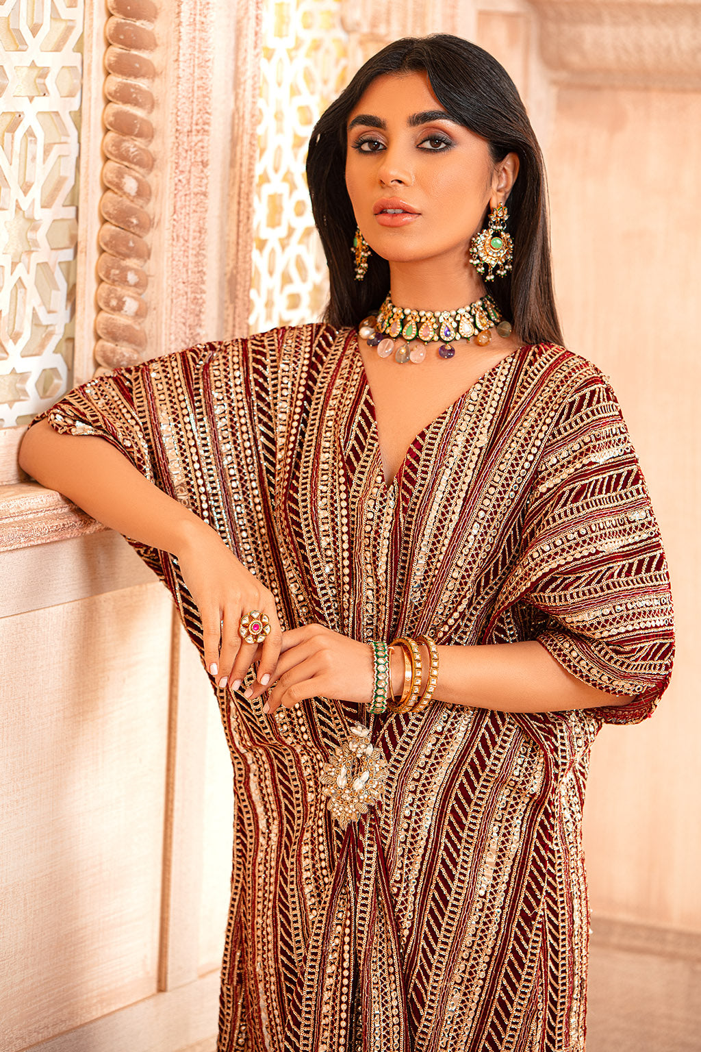 • Float Your Way Through The Wedding Season In Ethereal Bliss. Meticulously Crafted Kaftan In A Bold Red Hue.