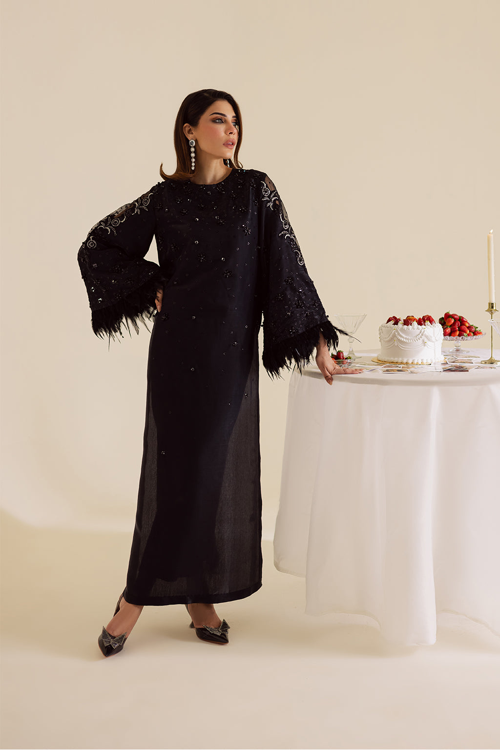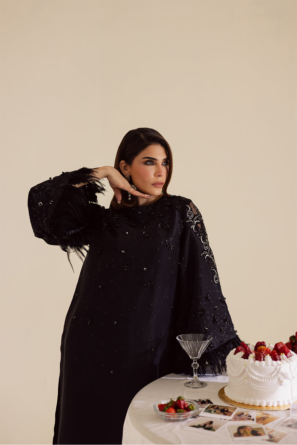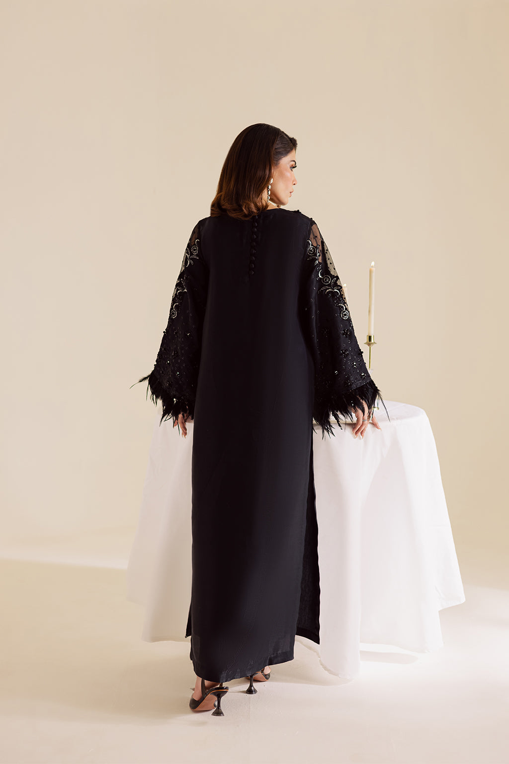 for a touch of glamour. Paired with tailored silk cigarette pants