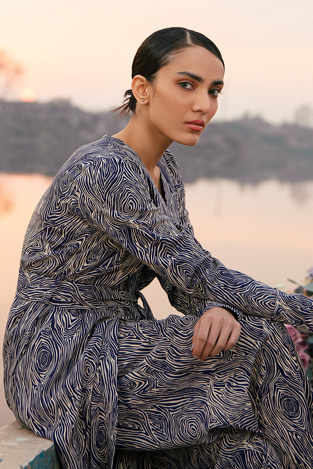 • Printed Long Shirt Having Side Slits & Knot In Front