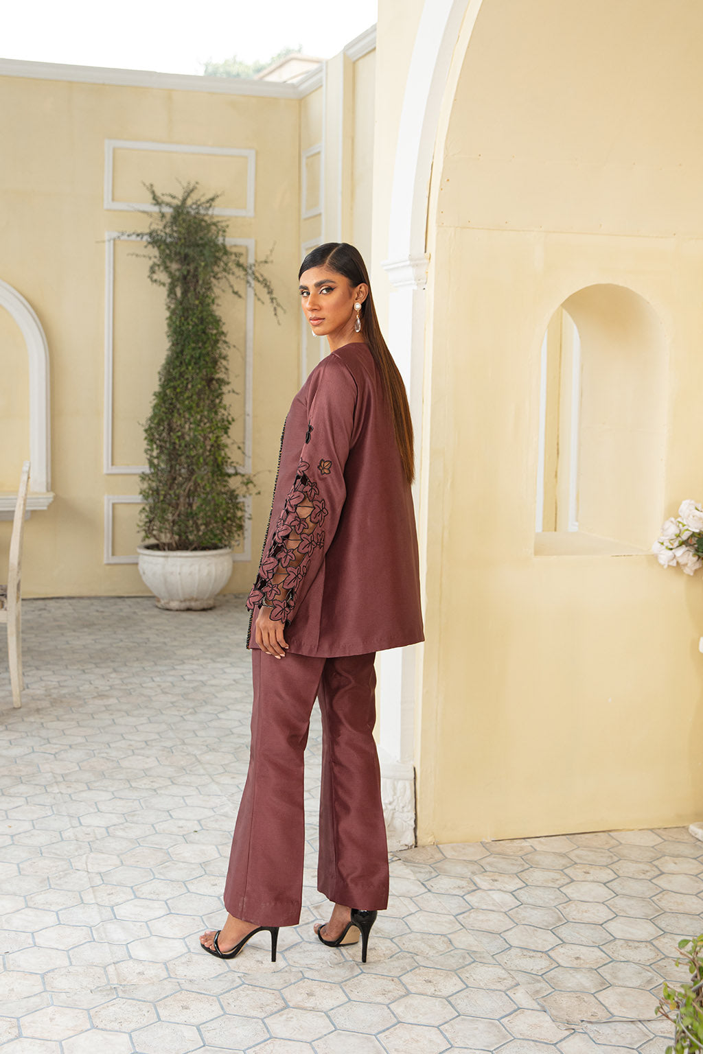 - An Exquisite 3-Pc Including Embellished Jacket Paired With Straight Pant & Inner (Adda work front placket Patti)