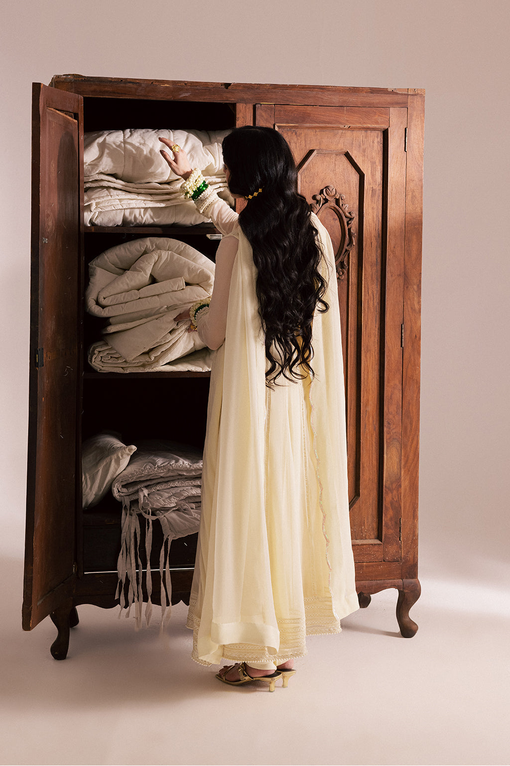 Fabric: Chiffon and raw silk