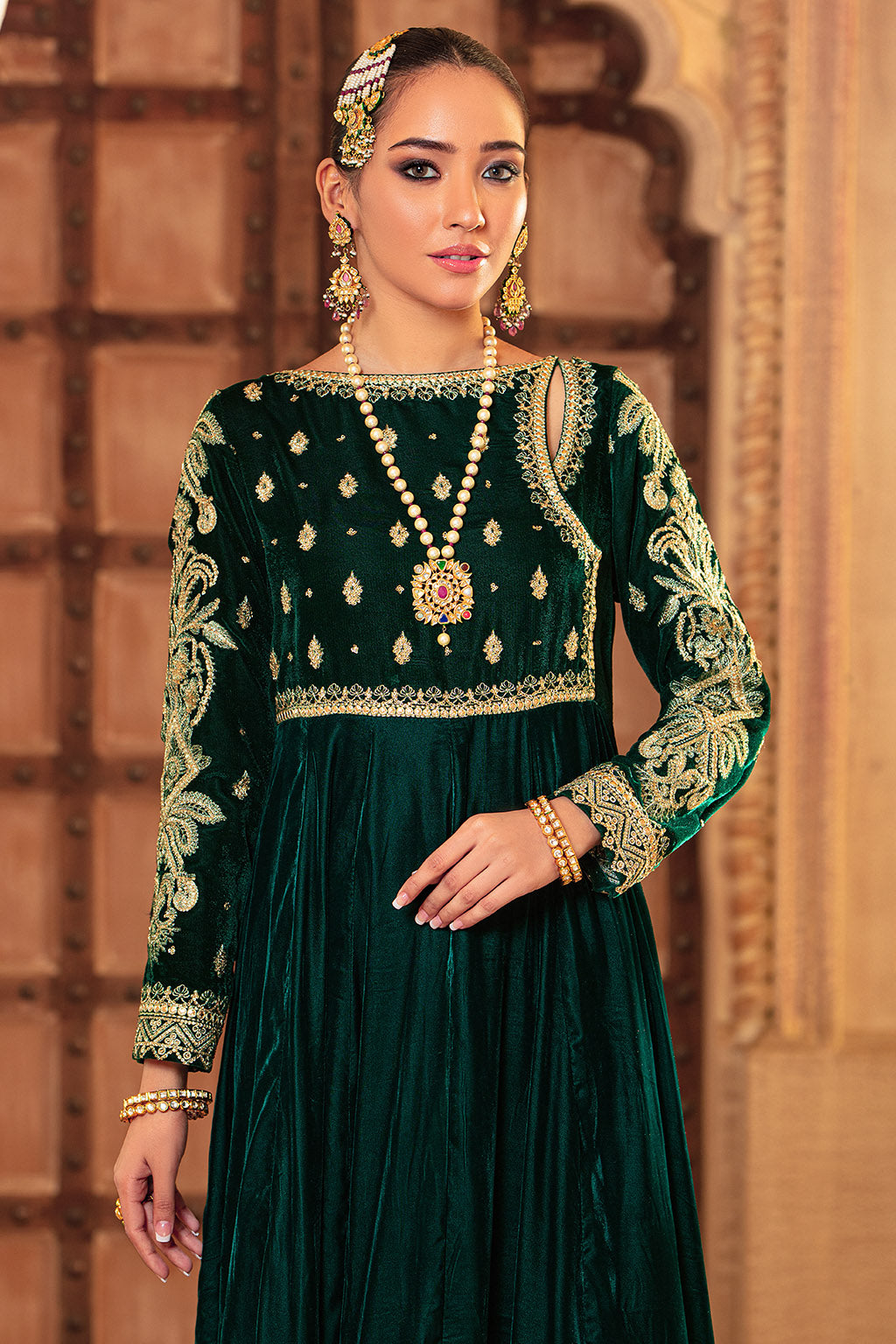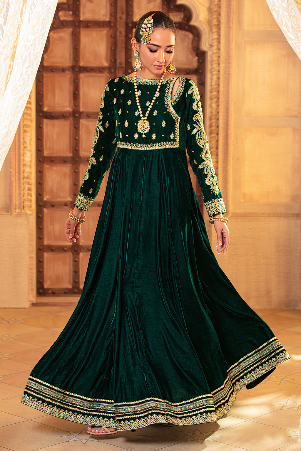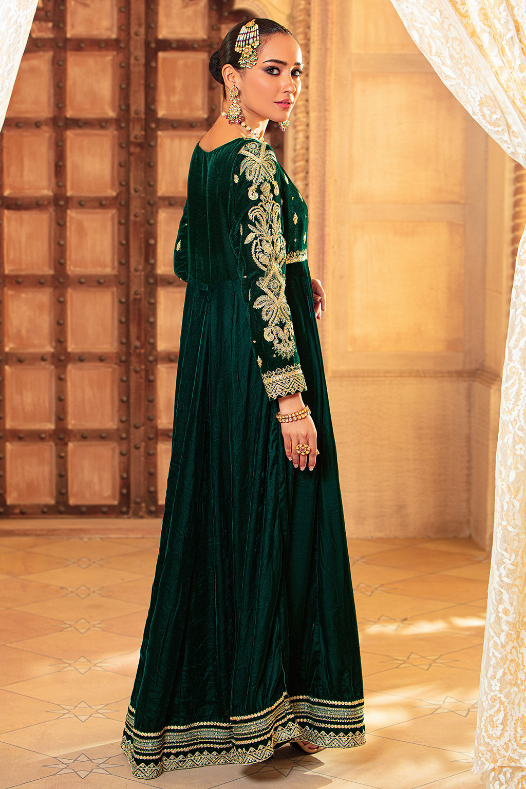 This beautiful attire channelled feminine charm with unusual, stunning details. Cut from velvet and beautifully crafted with a blend of embellishments and Embroidery.