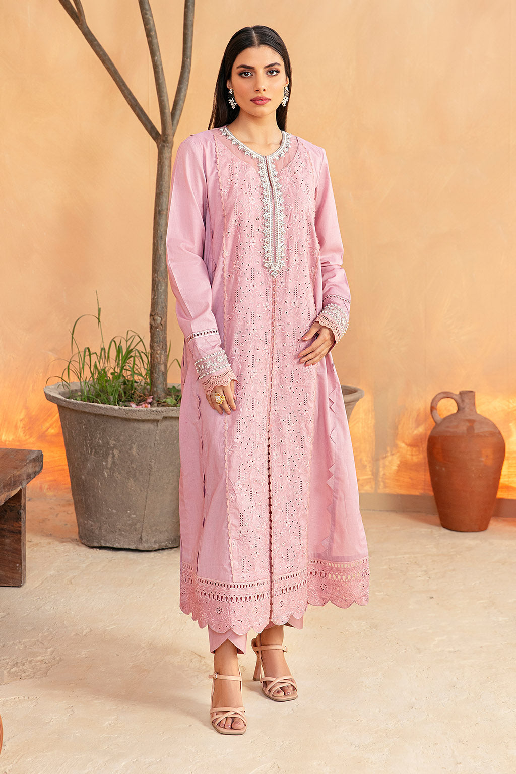 - STRAIGHT FRONT OPEN SHIRT WITH EMBROIDERY AND LACE FINISHES.