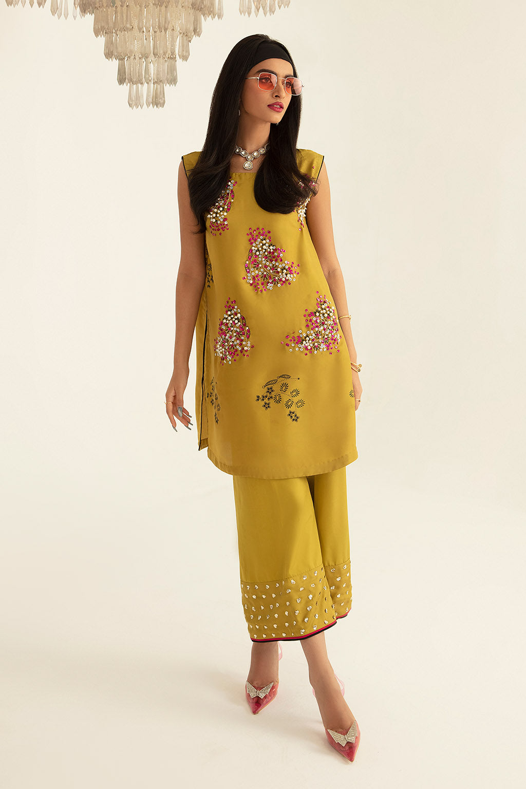 - This banana green outfit glows like a rare gem with its intricate gold sequin and naqshi work.
