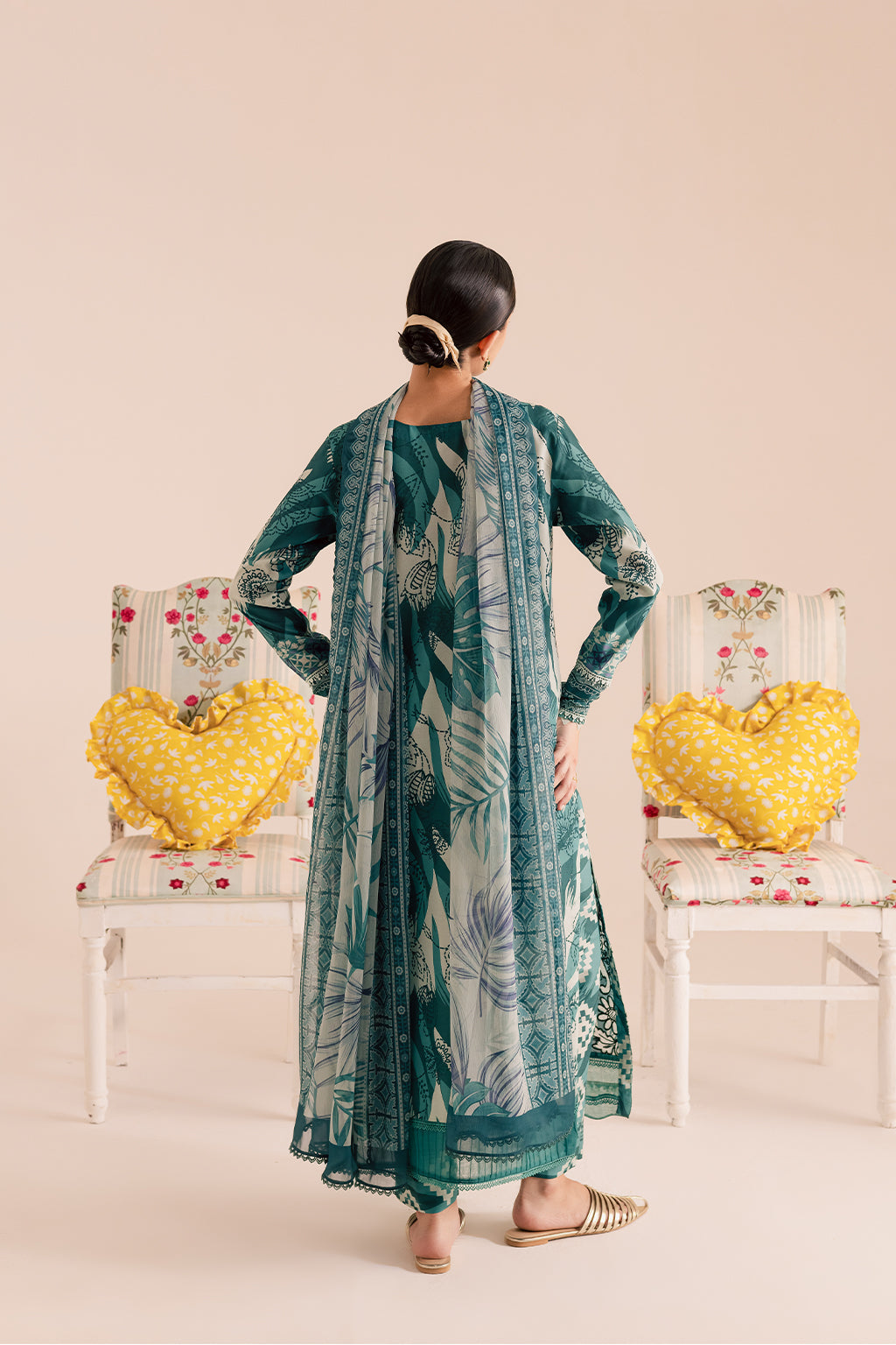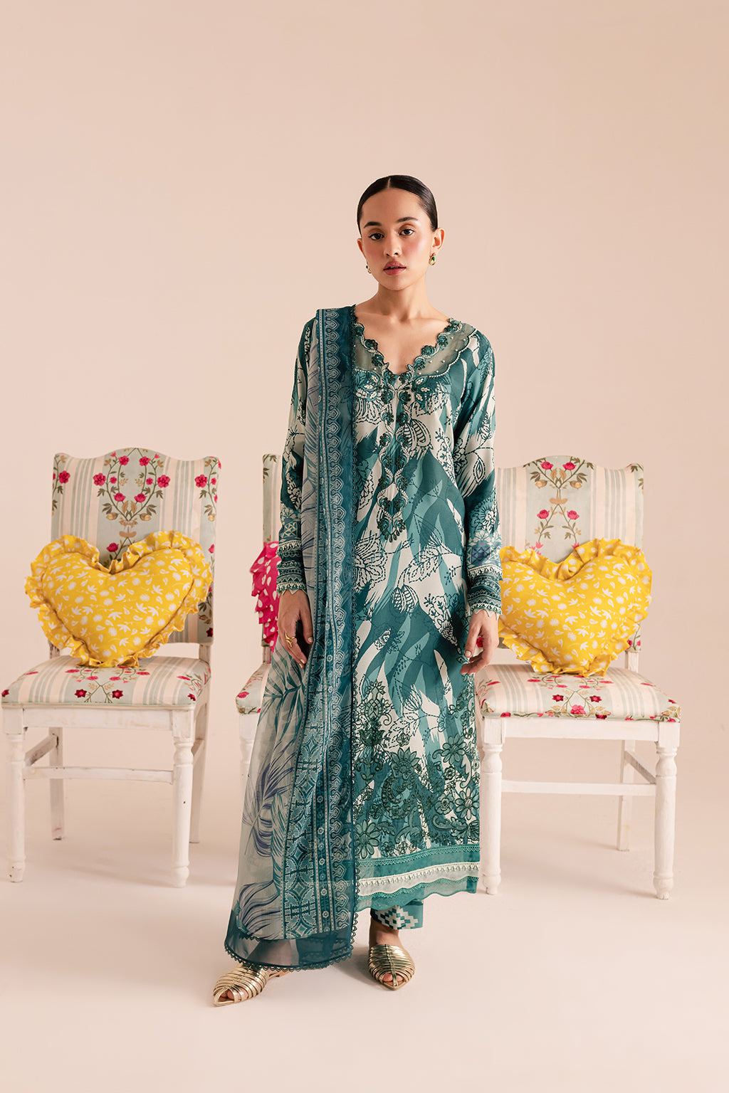 Embroidered lawn silk shirt, printed chiffon dupatta, printed lawn silk trouser