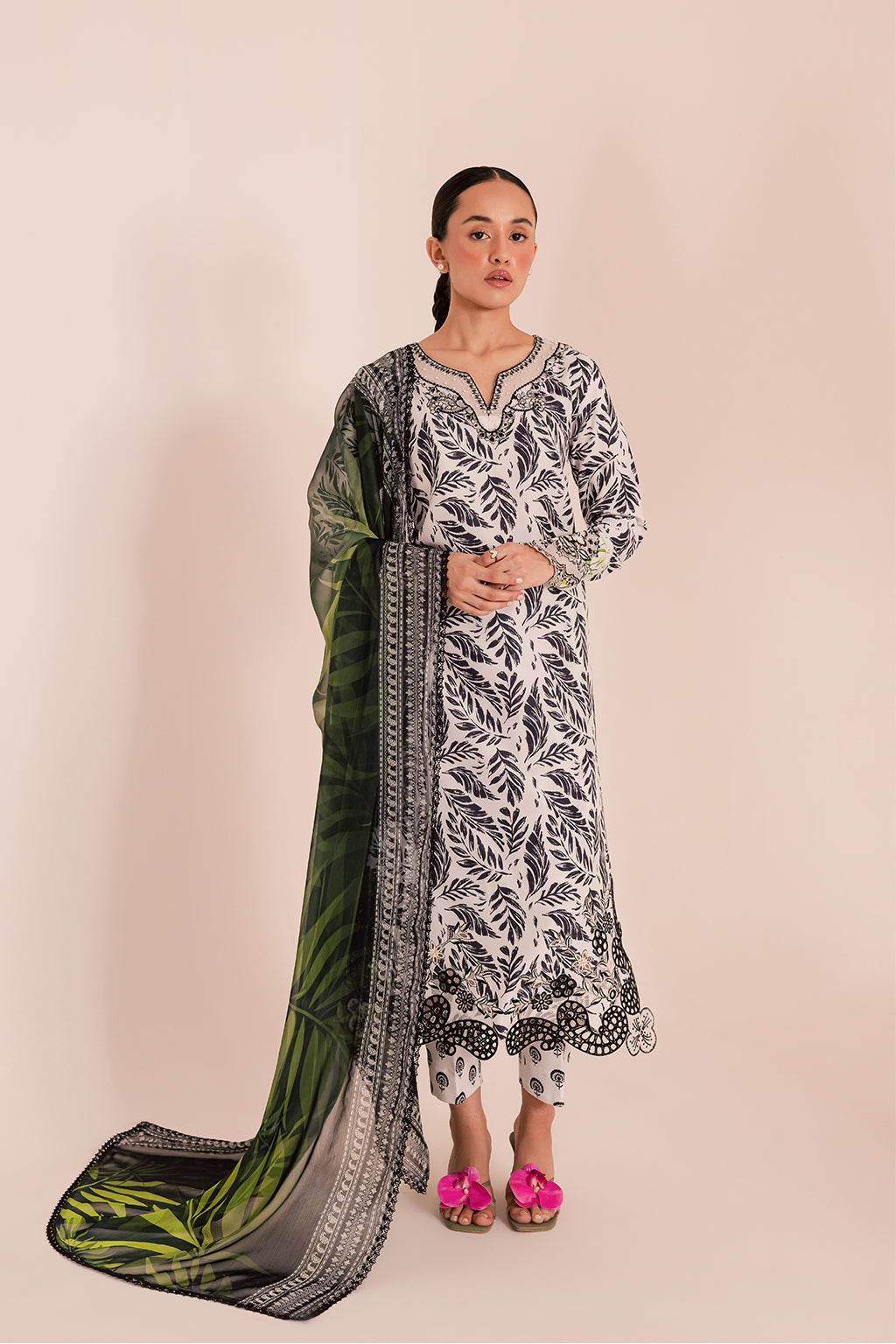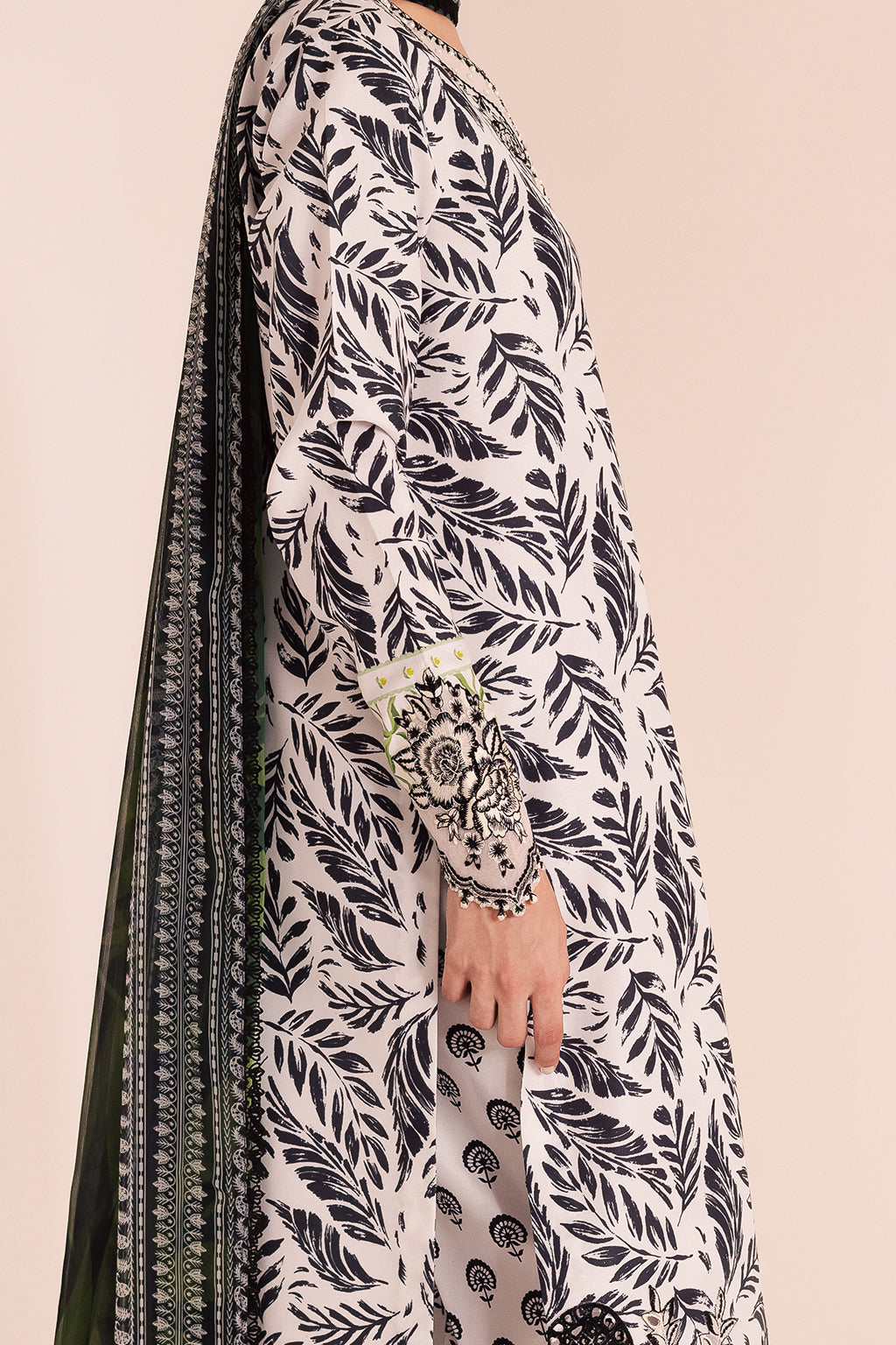 Embroidered lawn silk shirt, printed chiffon dupatta, printed lawn silk trouser