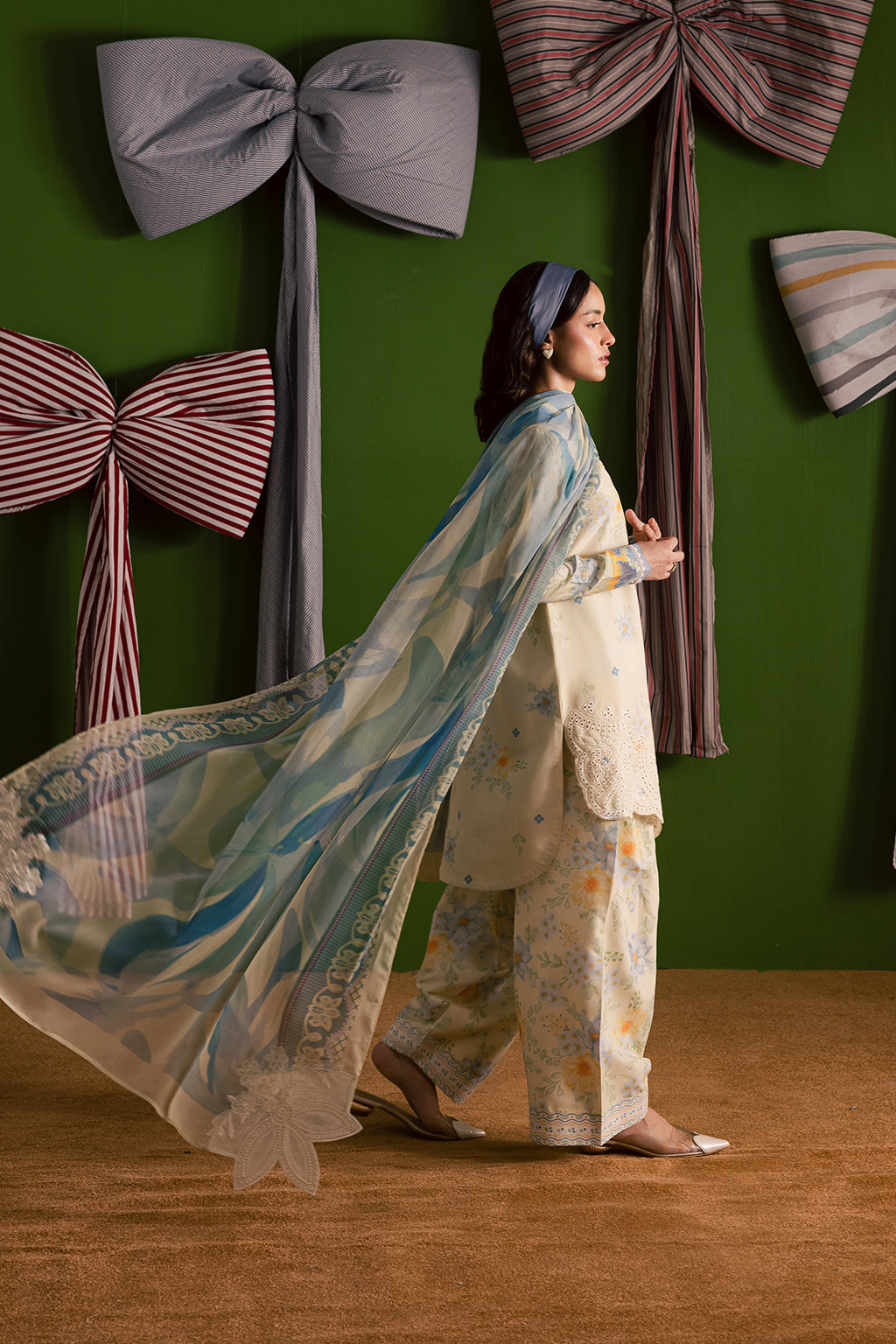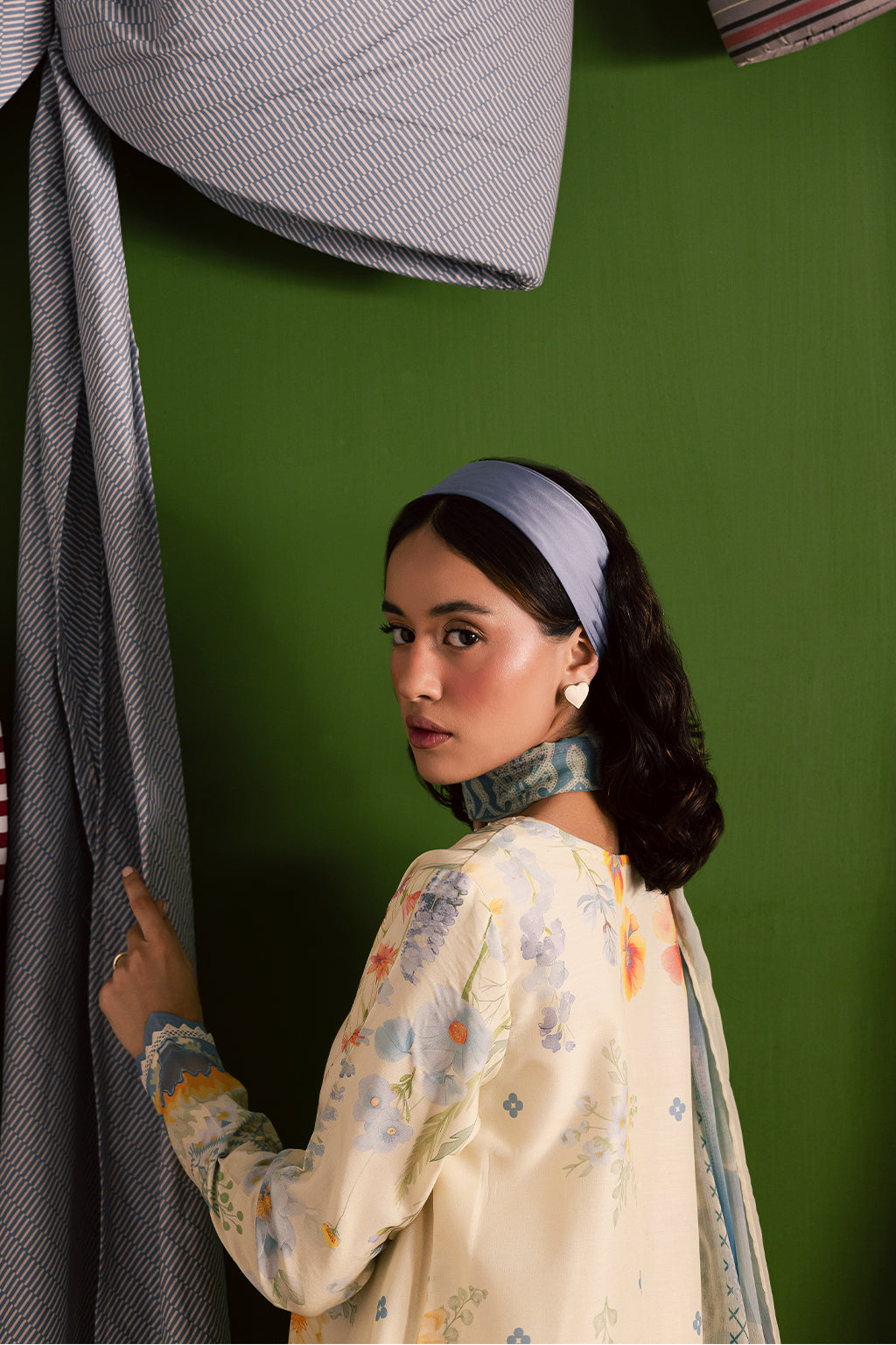 Embroidered lawn silk shirt, printed chiffon dupatta, printed lawn silk farshi shalwar