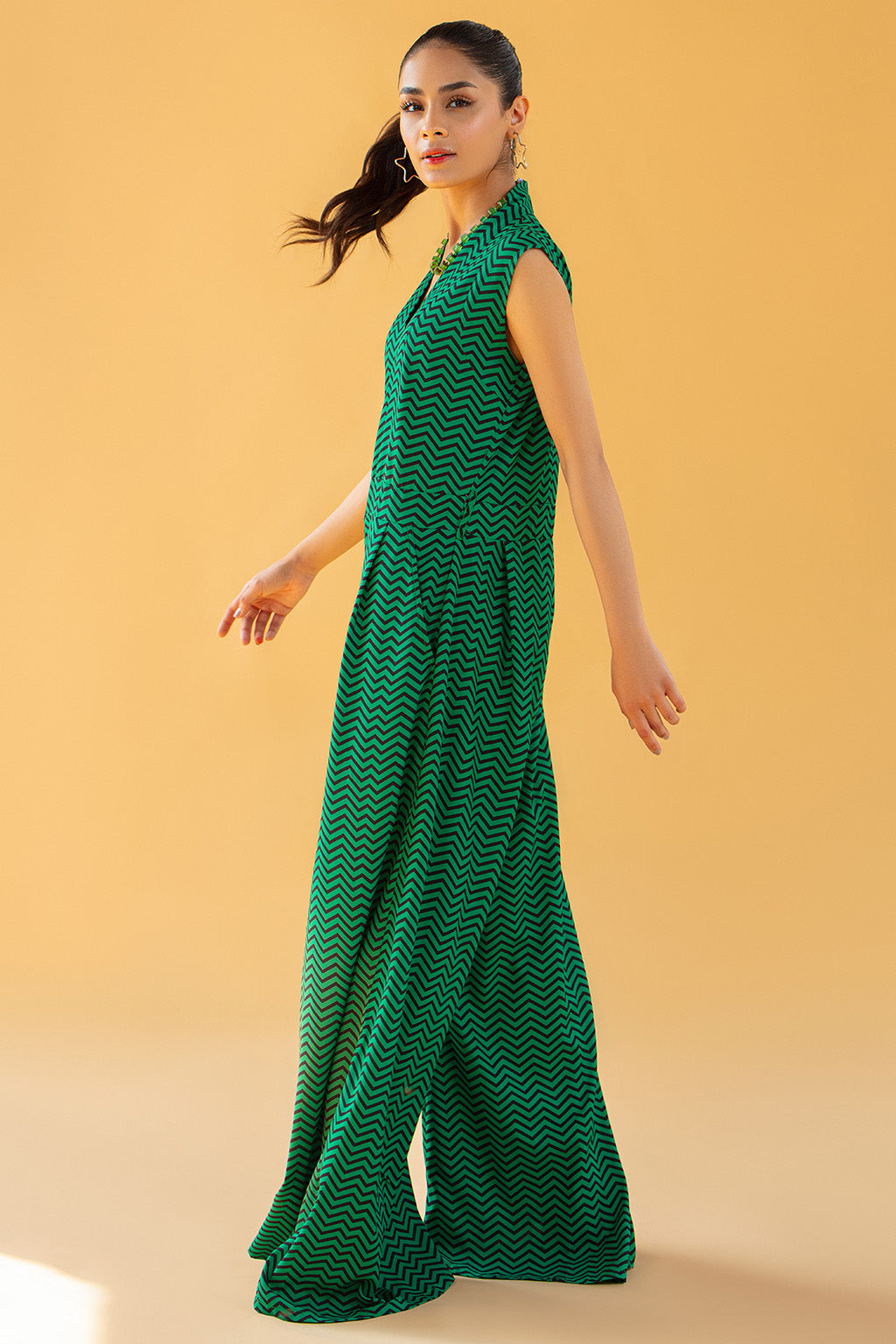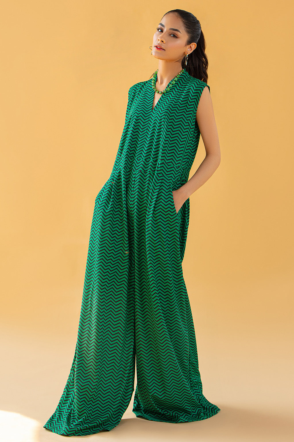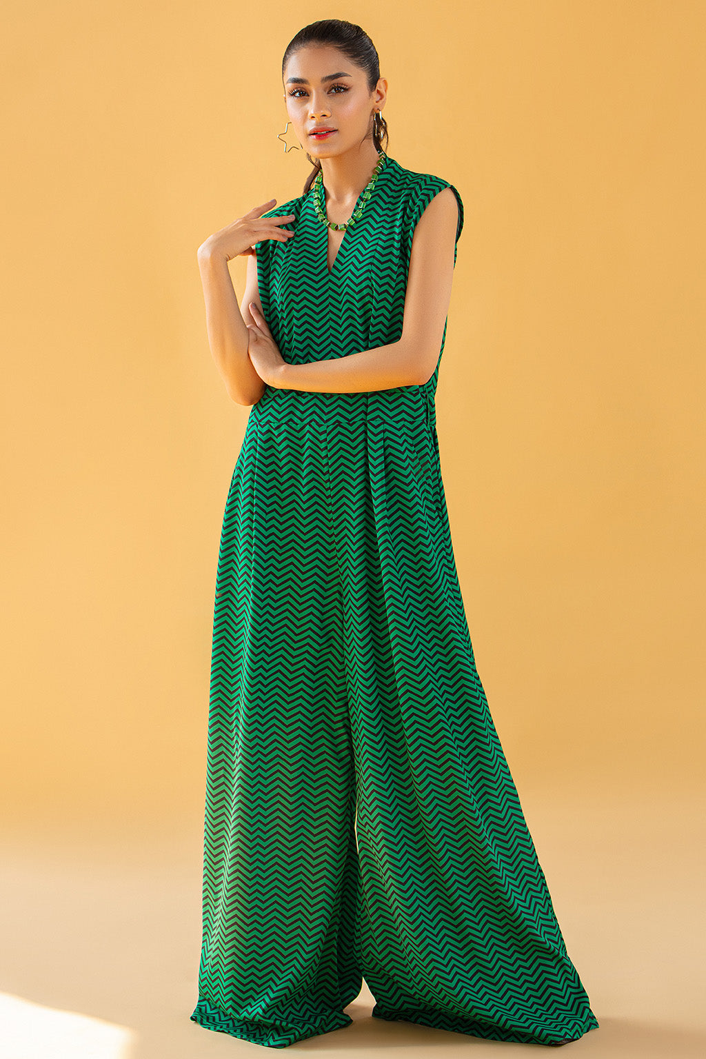 • V neck printed jumpsuit