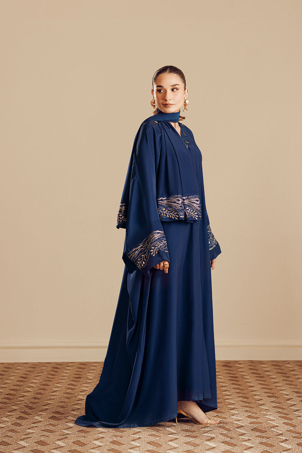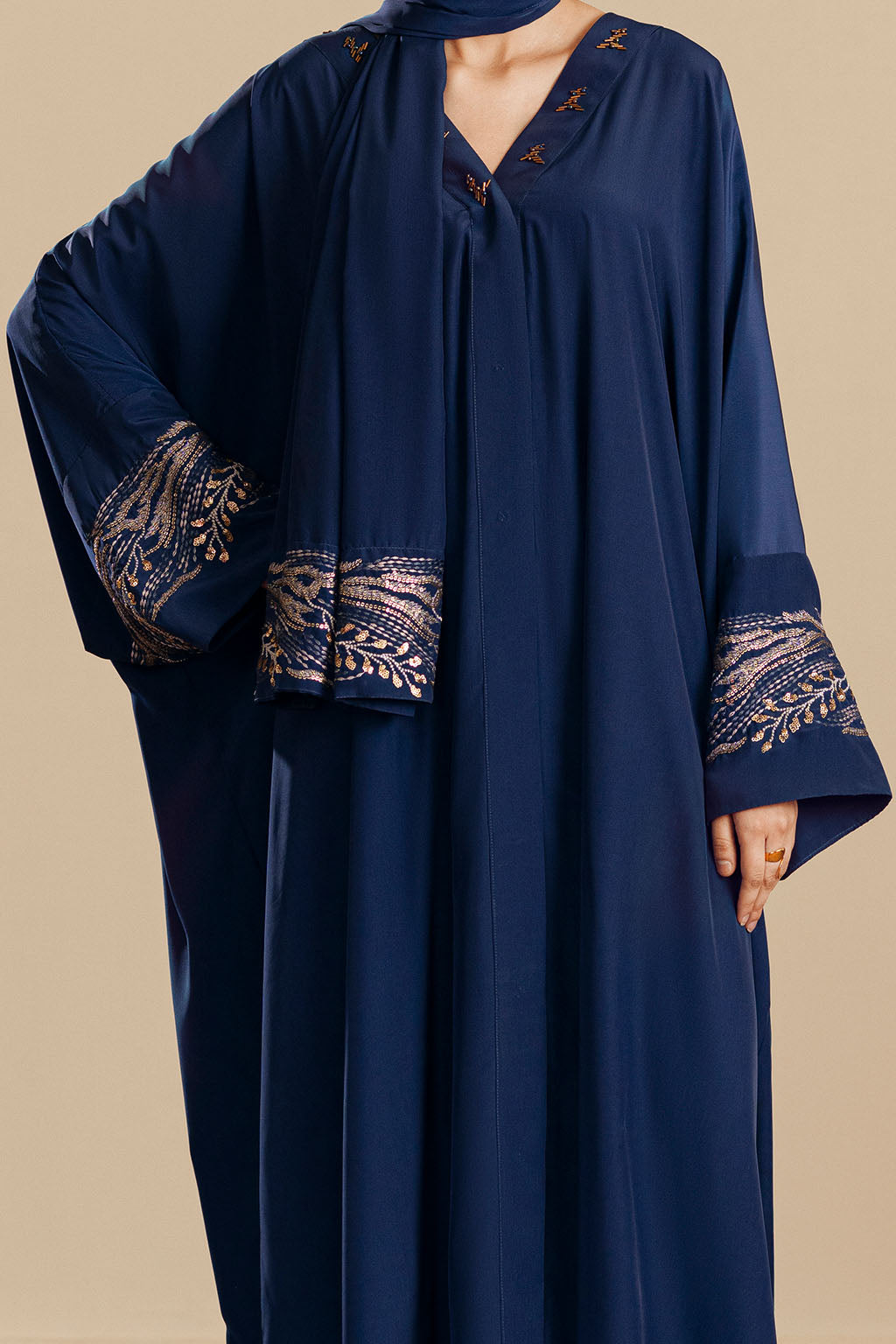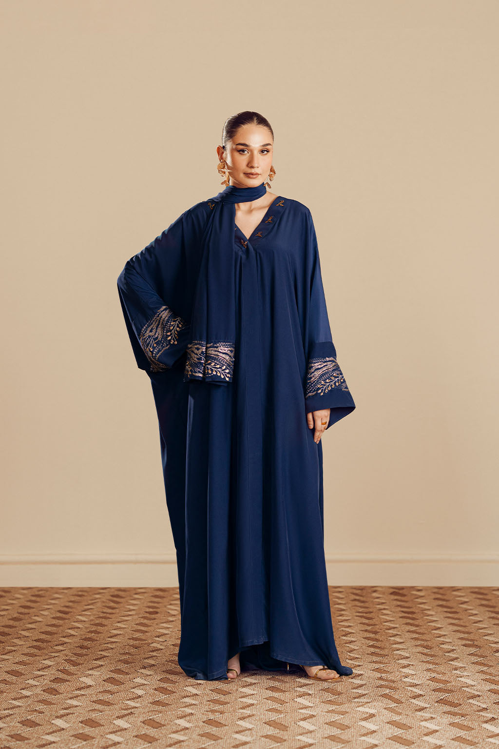 EMBROIDERED ABAYA WITH EMBROIDERED SCARF.