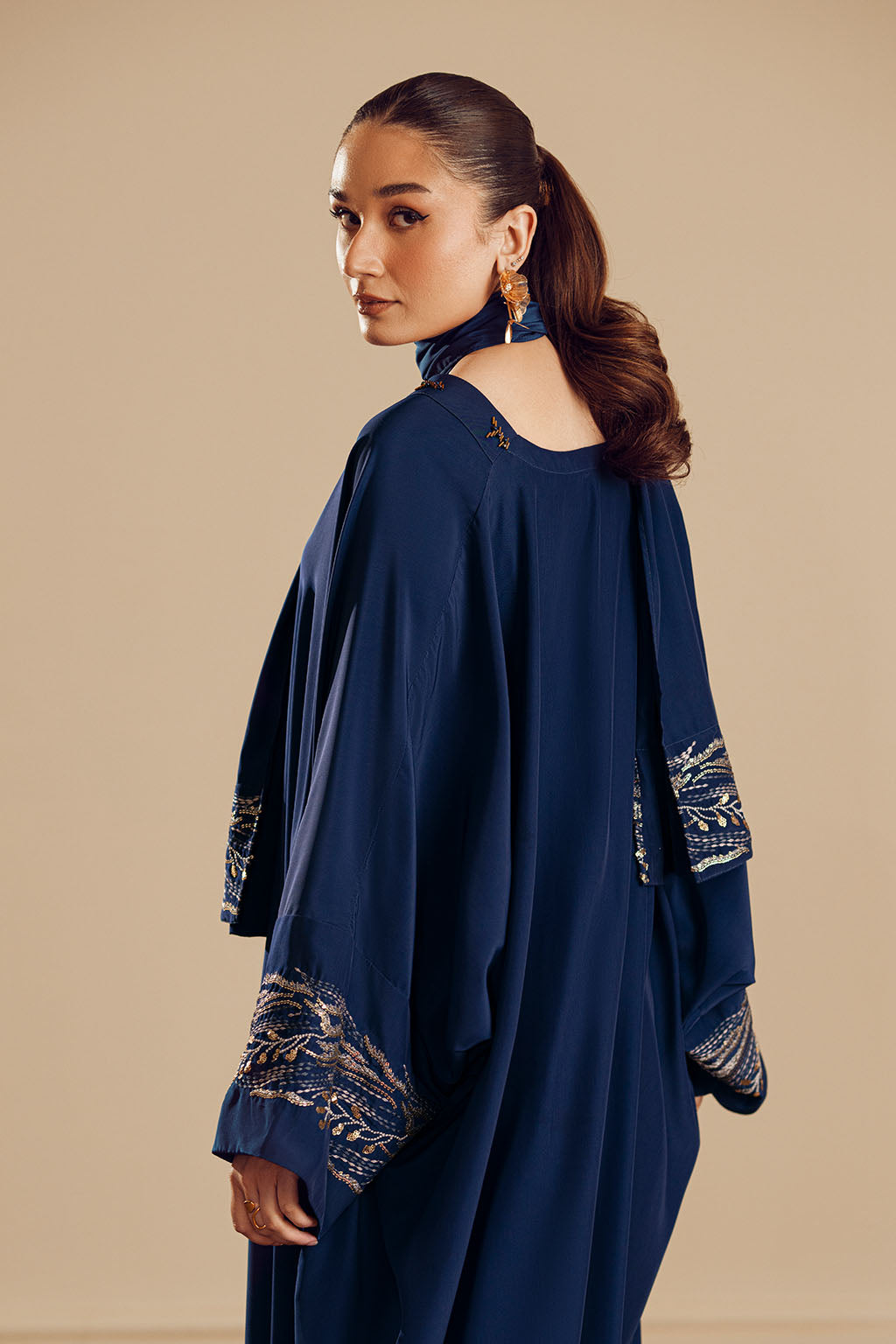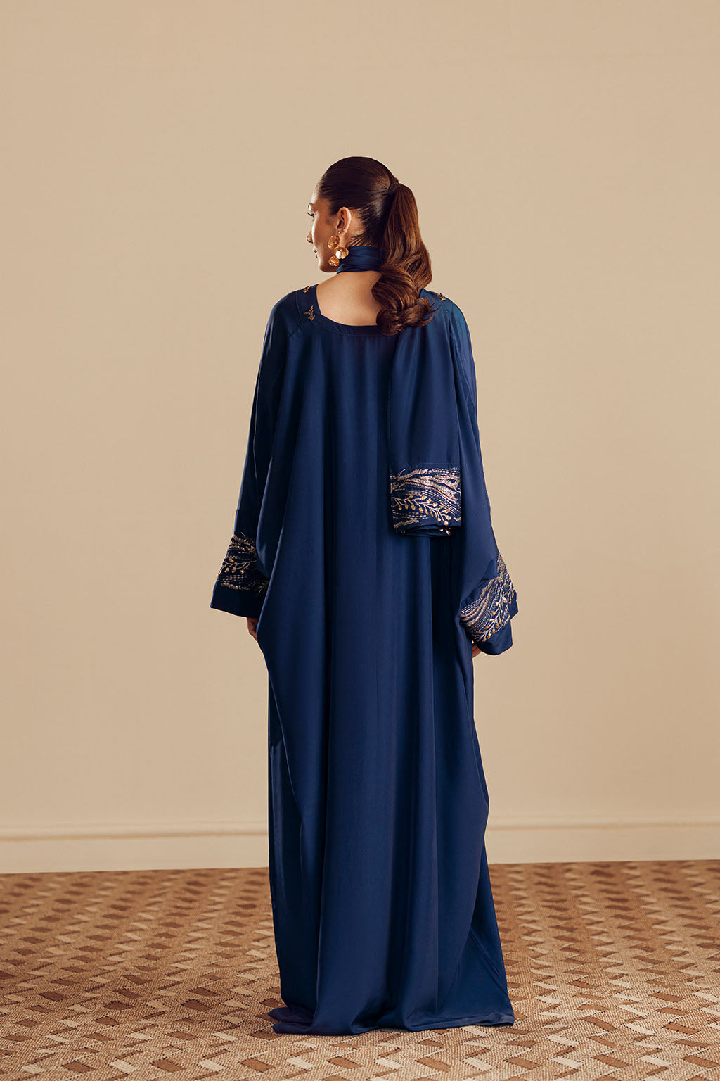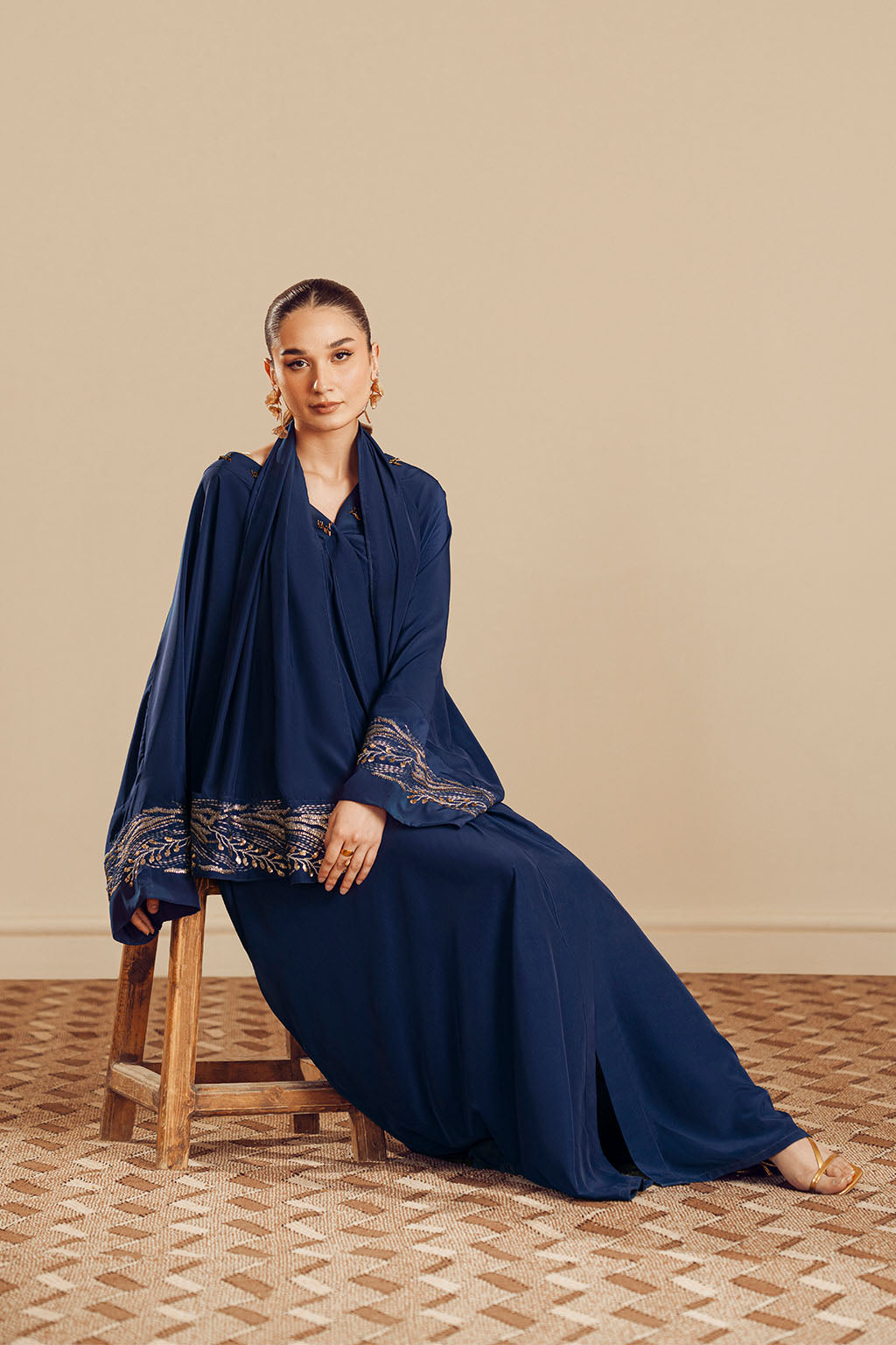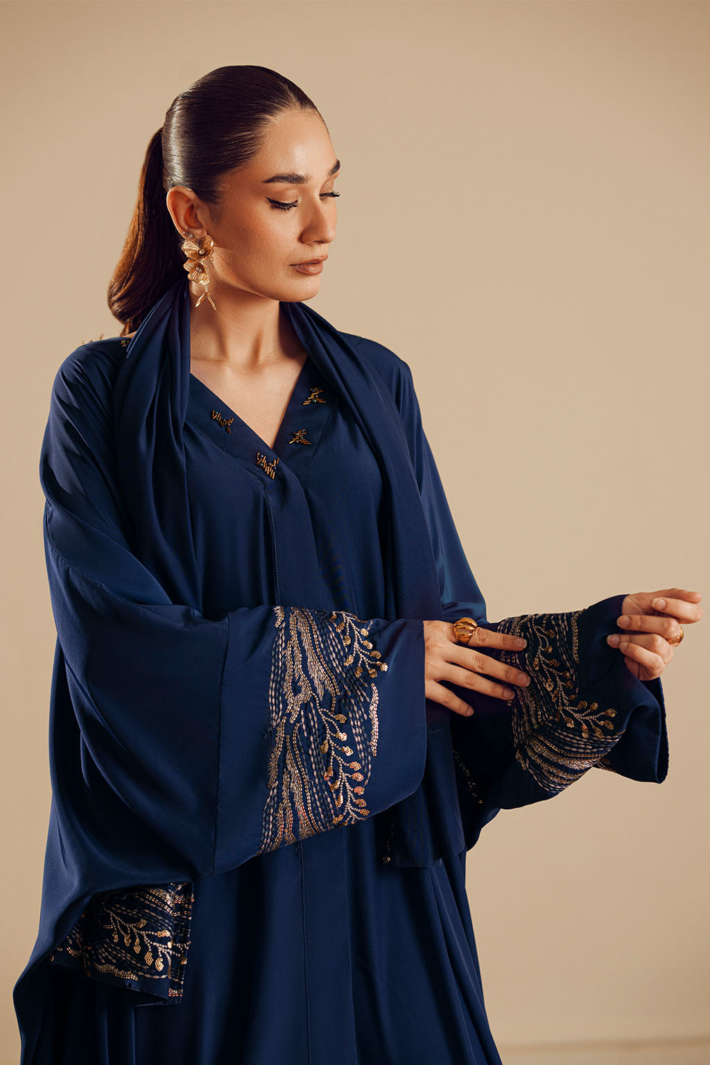 EMBROIDERED ABAYA WITH EMBROIDERED SCARF.