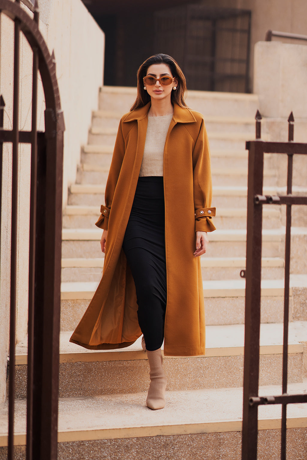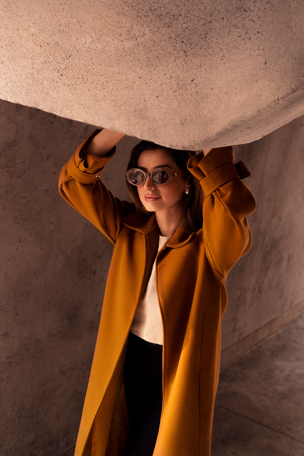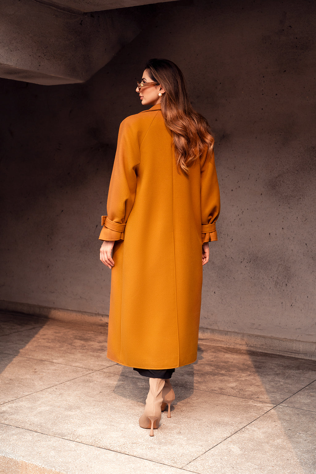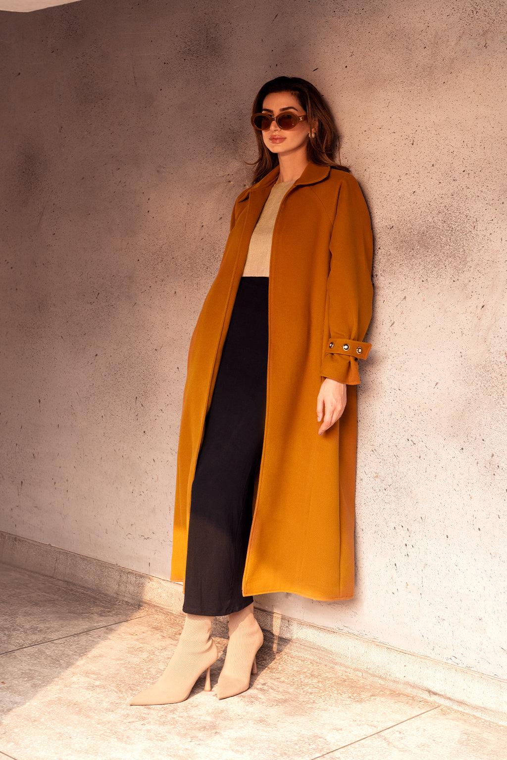 Mustard soft fine woollen fabric tailored full sleeves long coat