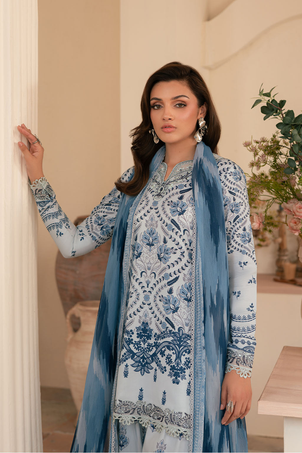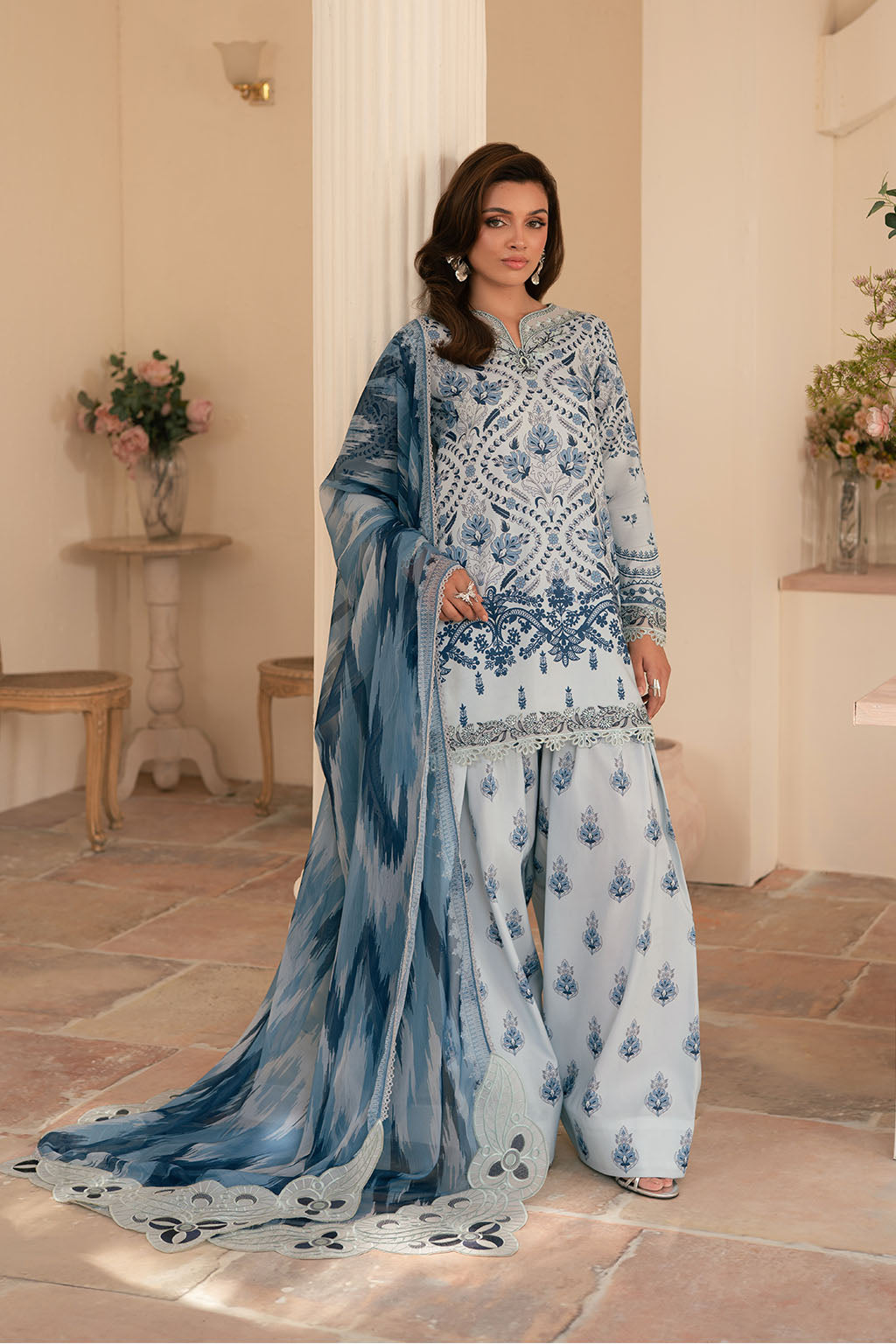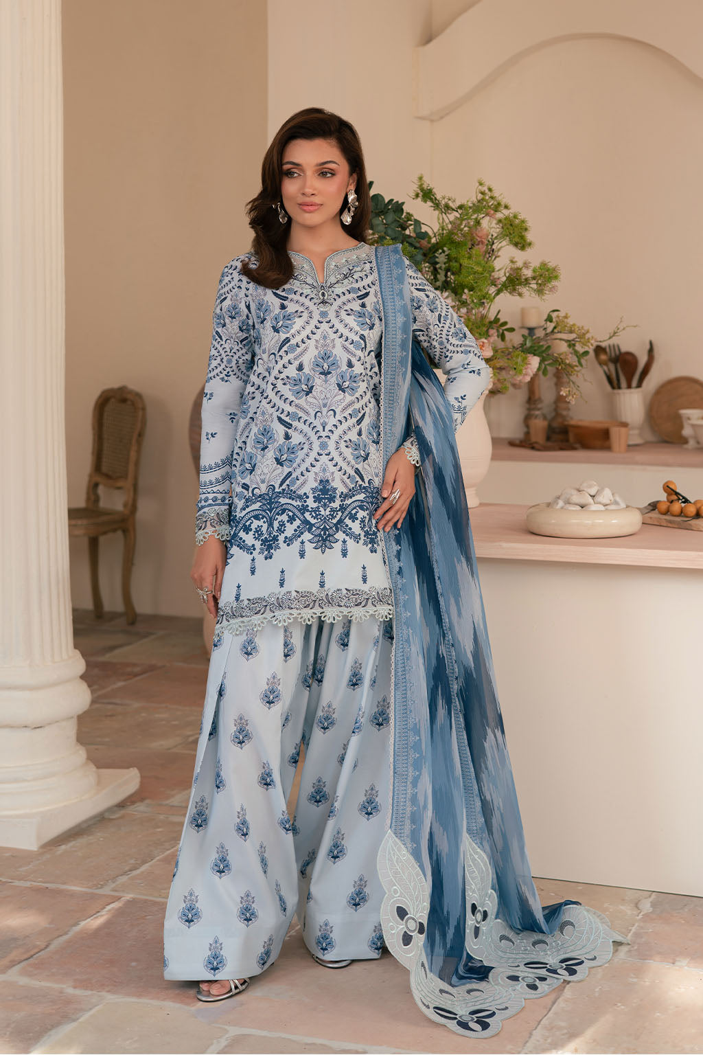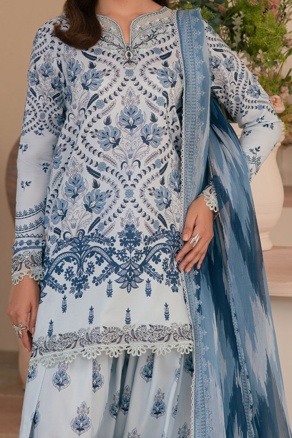 Printed lawn silk embroidered shirt, paired with printed lawn silk farshi shalwar & embroidered chiffon dupatta