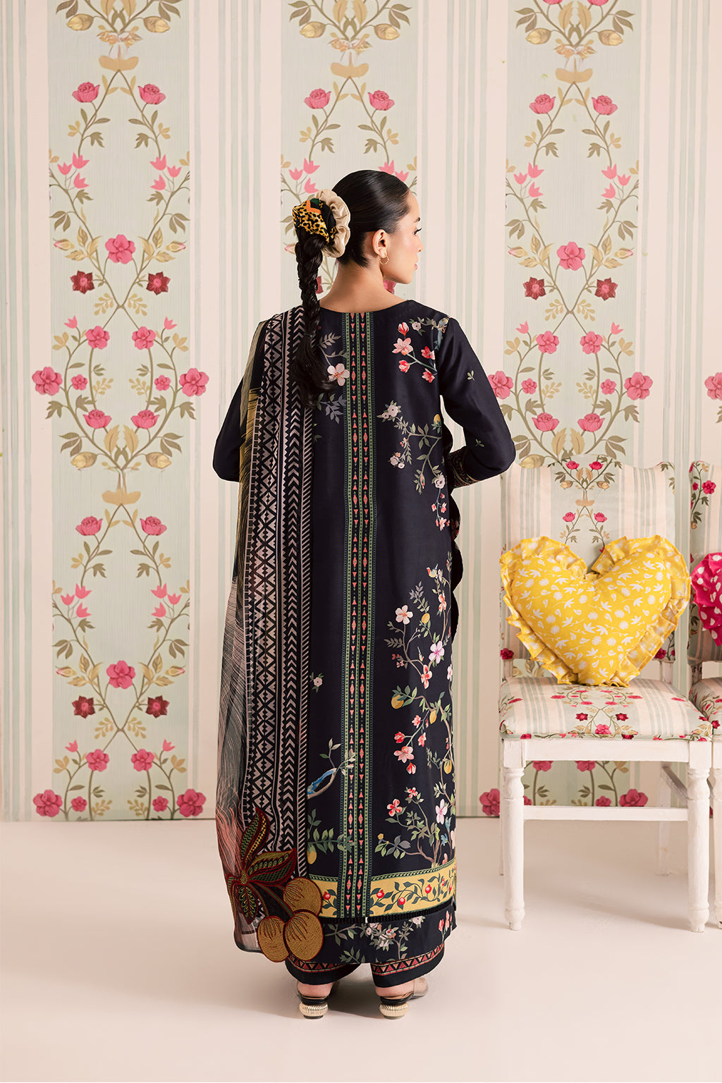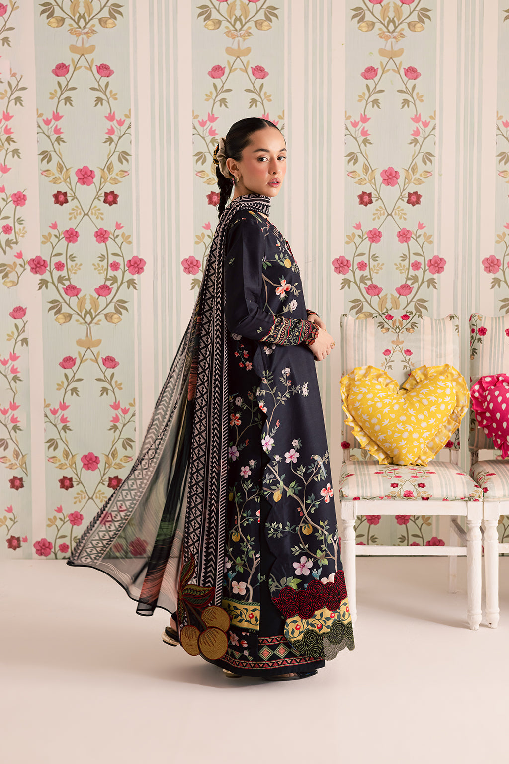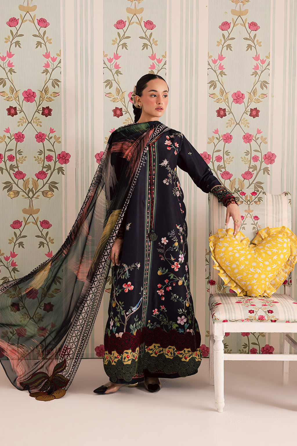 Embroidered lawn silk shirt, printed chiffon dupatta, printed lawn silk trouser