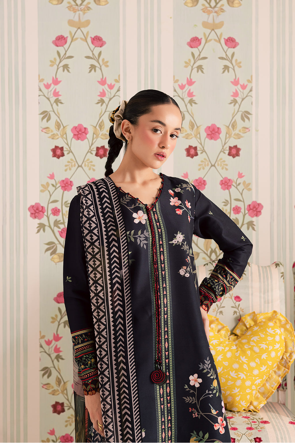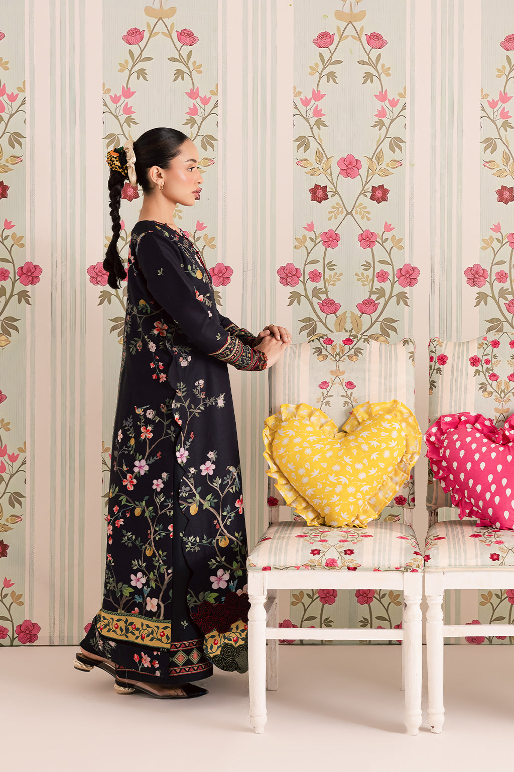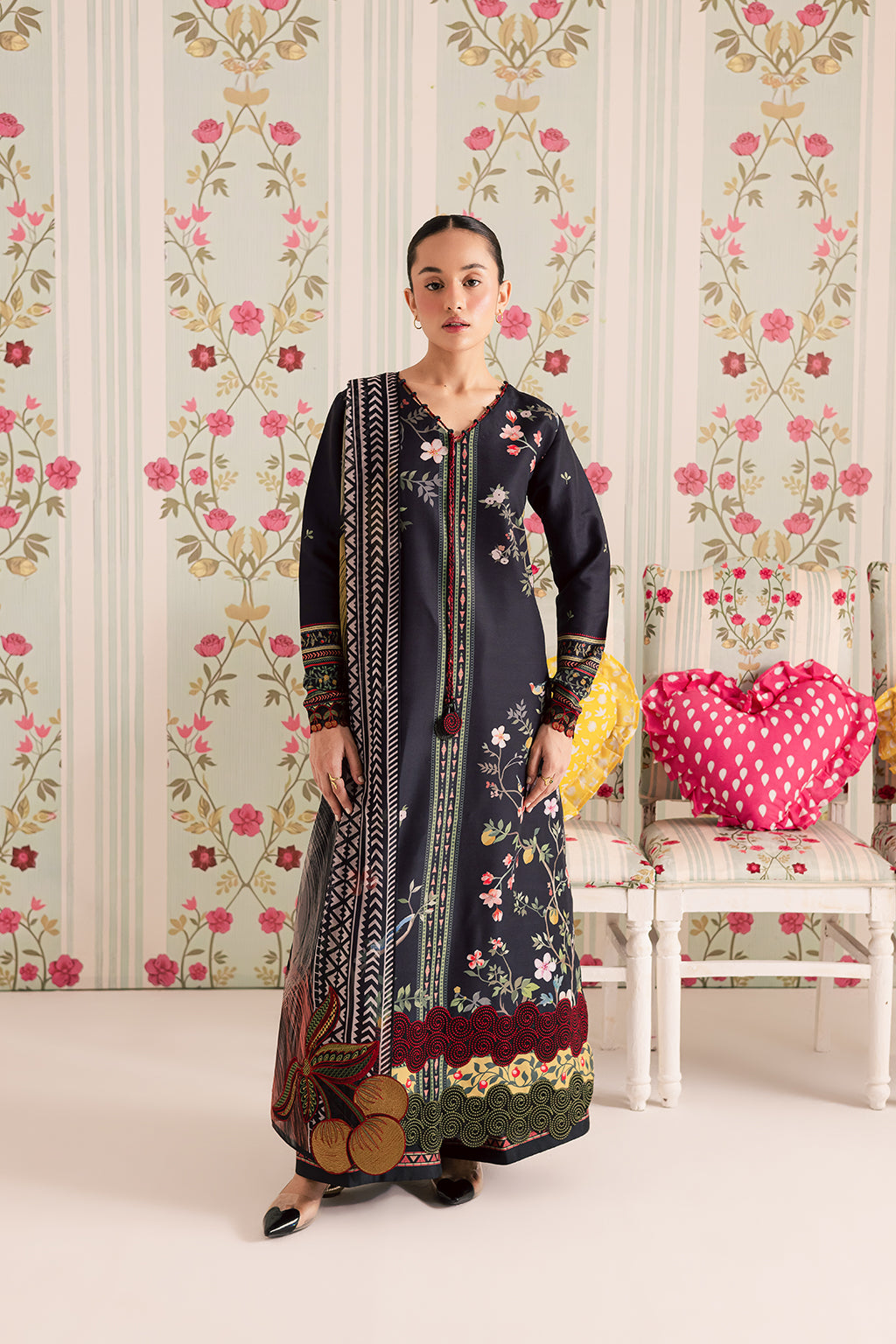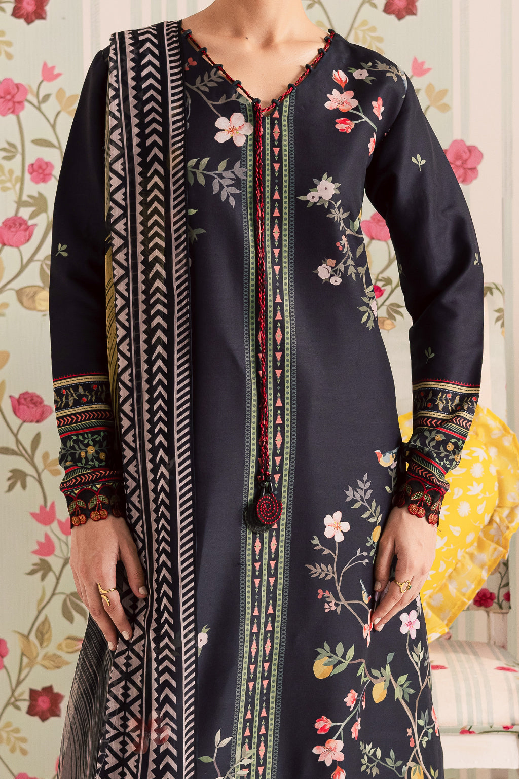 Embroidered lawn silk shirt, printed chiffon dupatta, printed lawn silk trouser