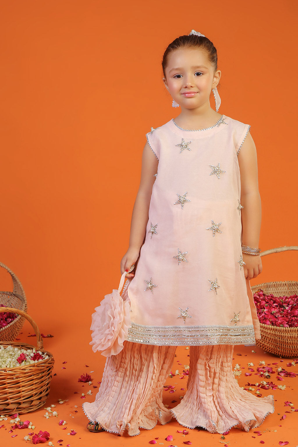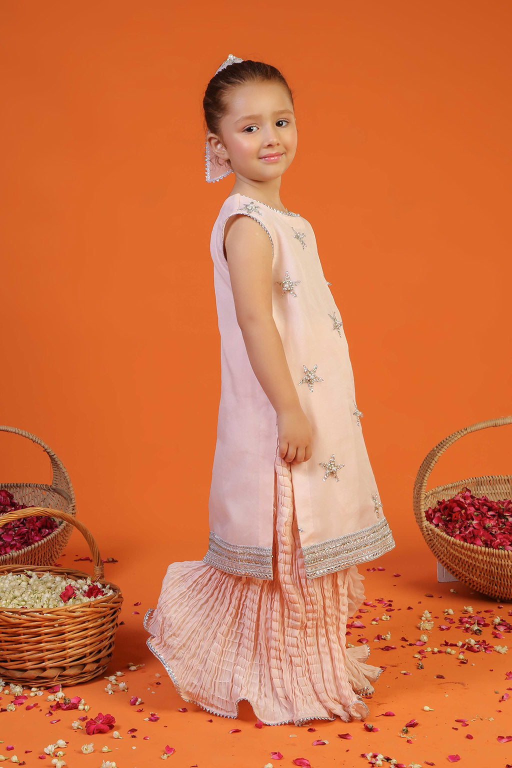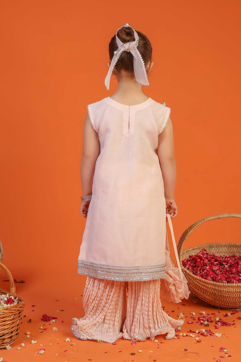 Paired with a gorgeous crushed sharara and organza dupatta