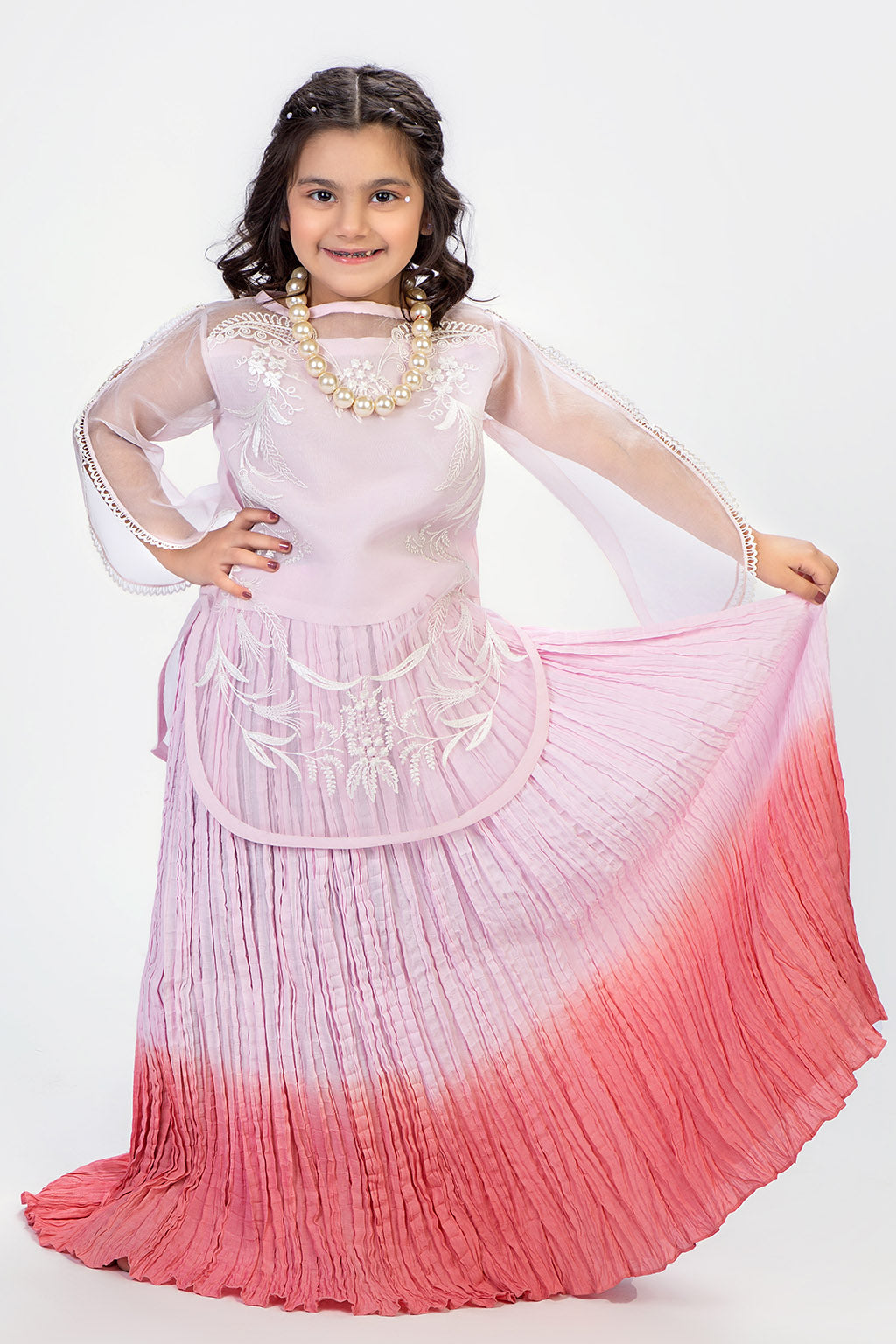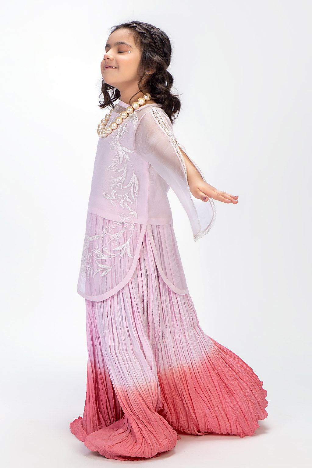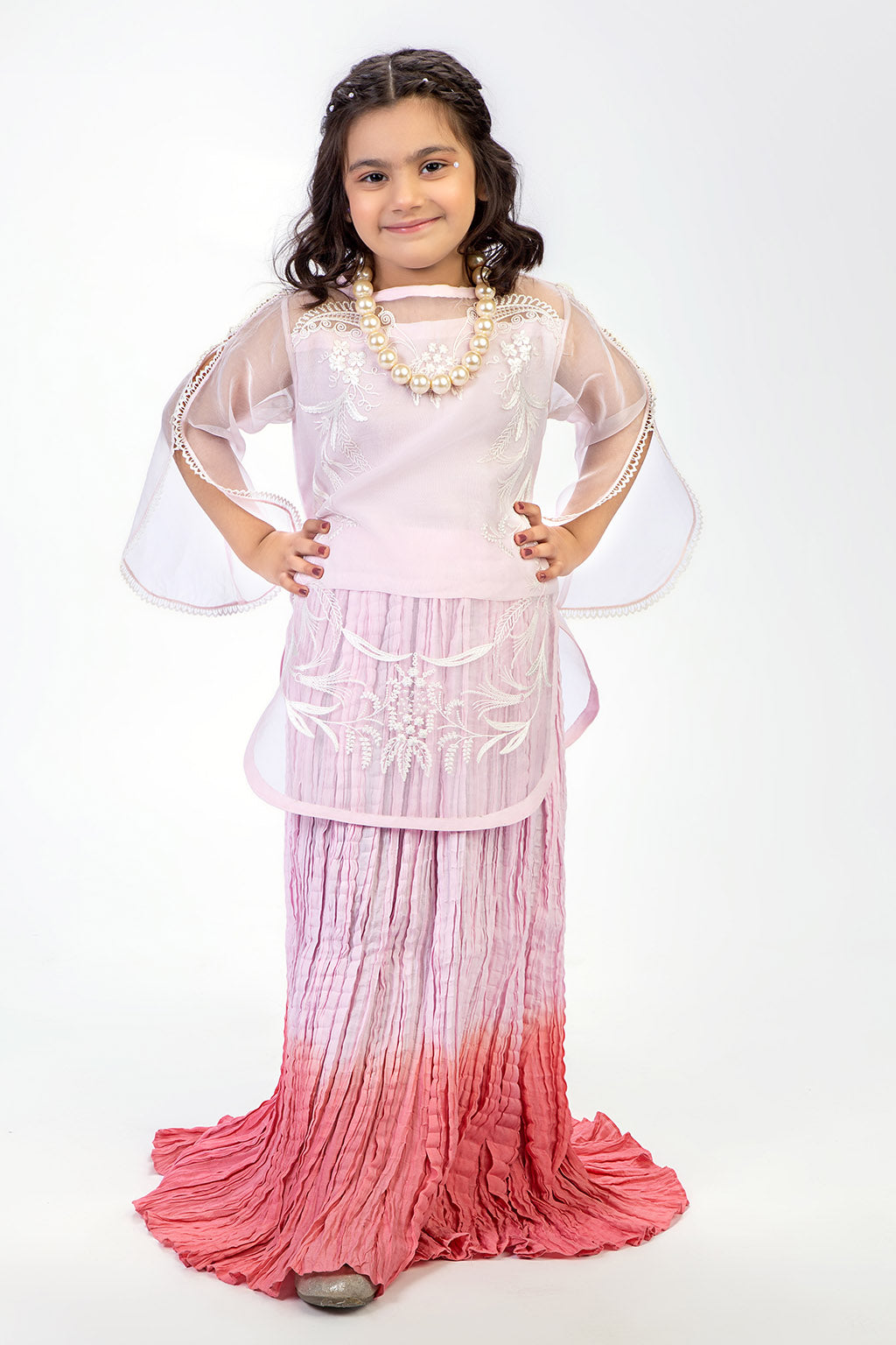 Embroidered organza shirt paired with tie & dye crushed sharara
