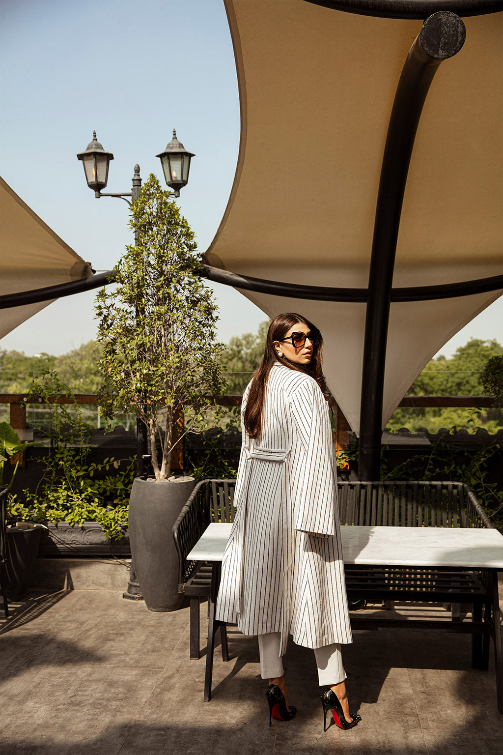 Striped coat in a wool fabric with